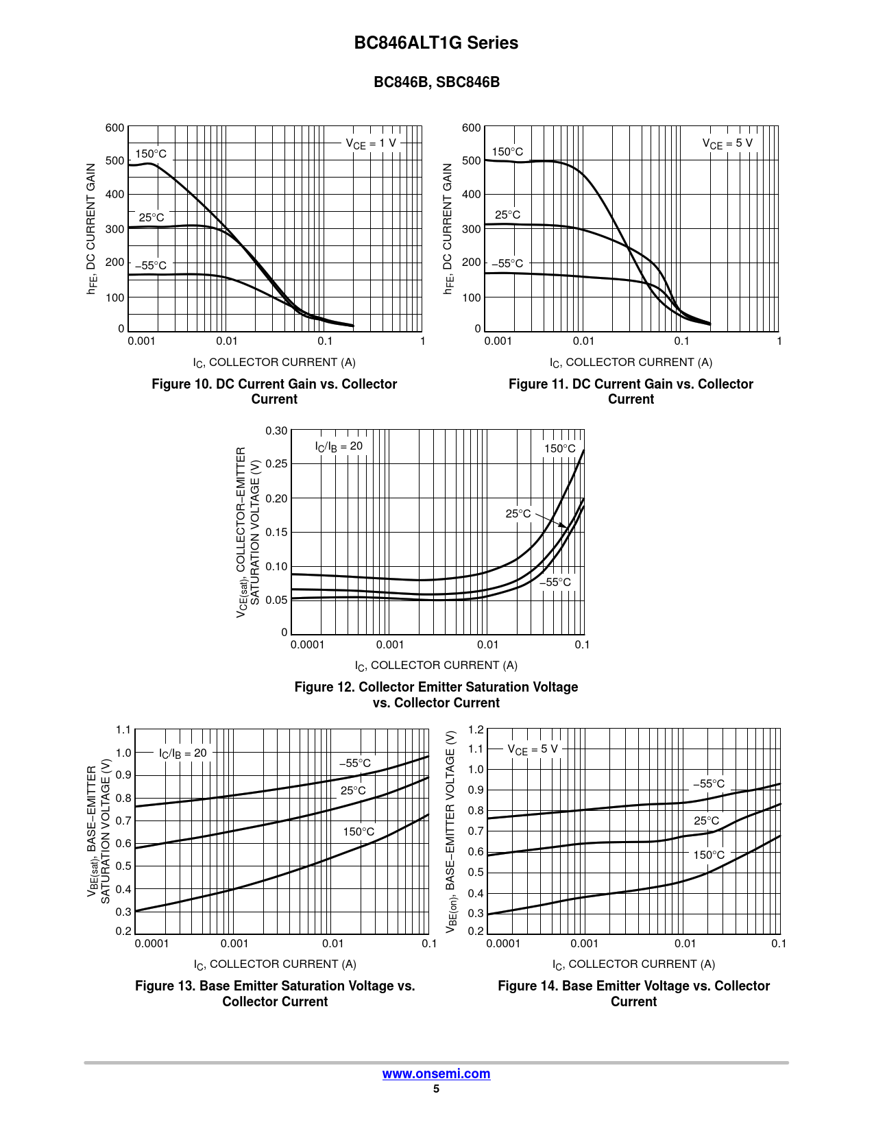 BC846ALT1G Series. BC846B, SBC846B. Figure 10. DC Current Gain vs. Collector. Figure 11. DC Current Gain vs. Collector. Current