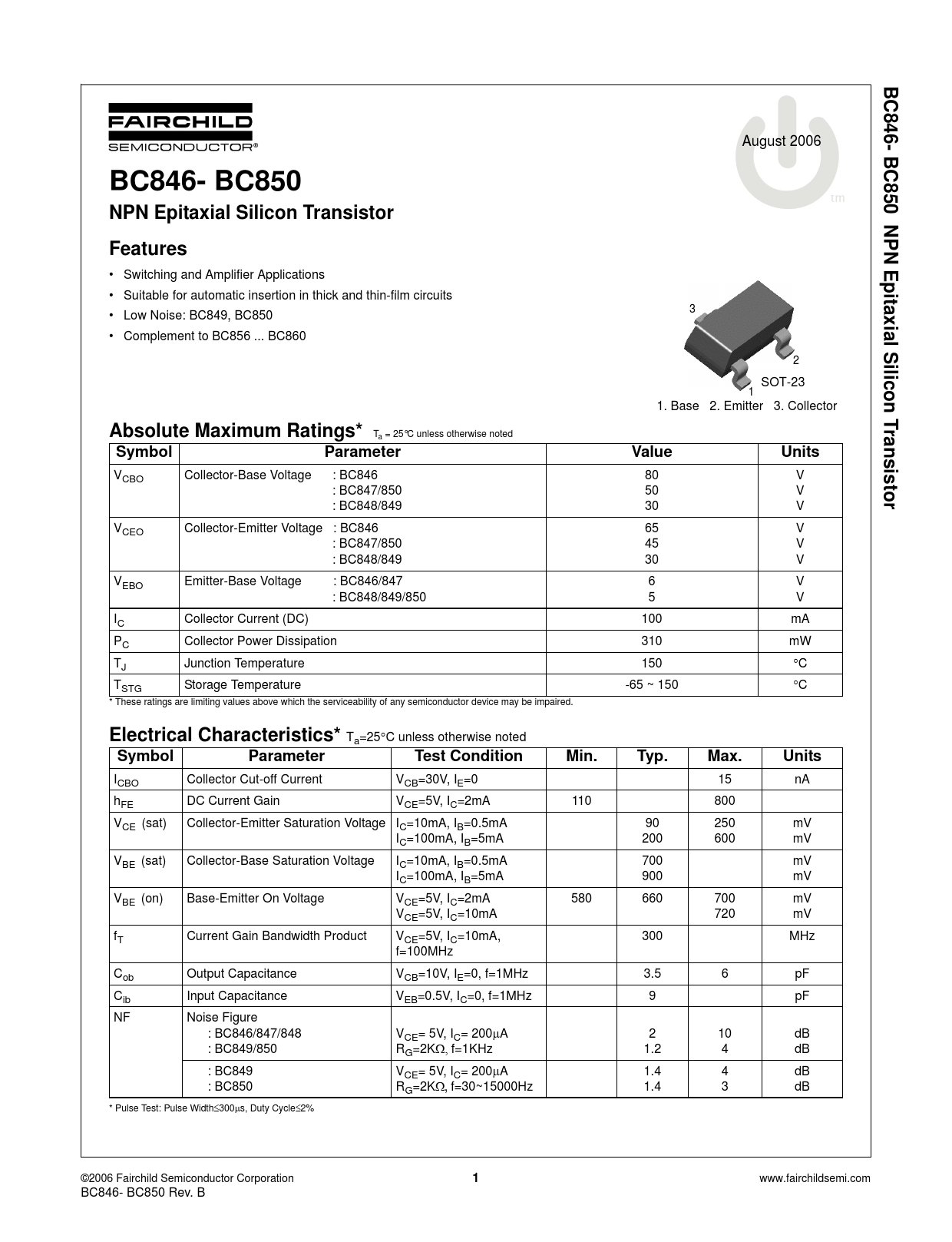 Datasheet BC846, BC847, BC848, BC849, BC850 (Fairchild)