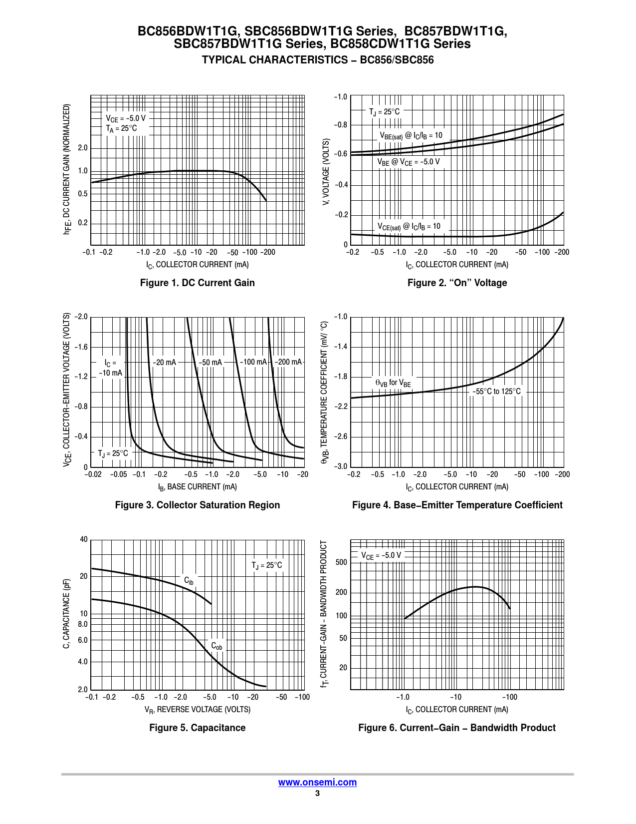 Datasheet BC856BDW1T1G, SBC856BDW1T1G, BC857BDW1T1G, SBC857BDW1T1G, BC858CDW1T1G (ON Semiconductor) - 3