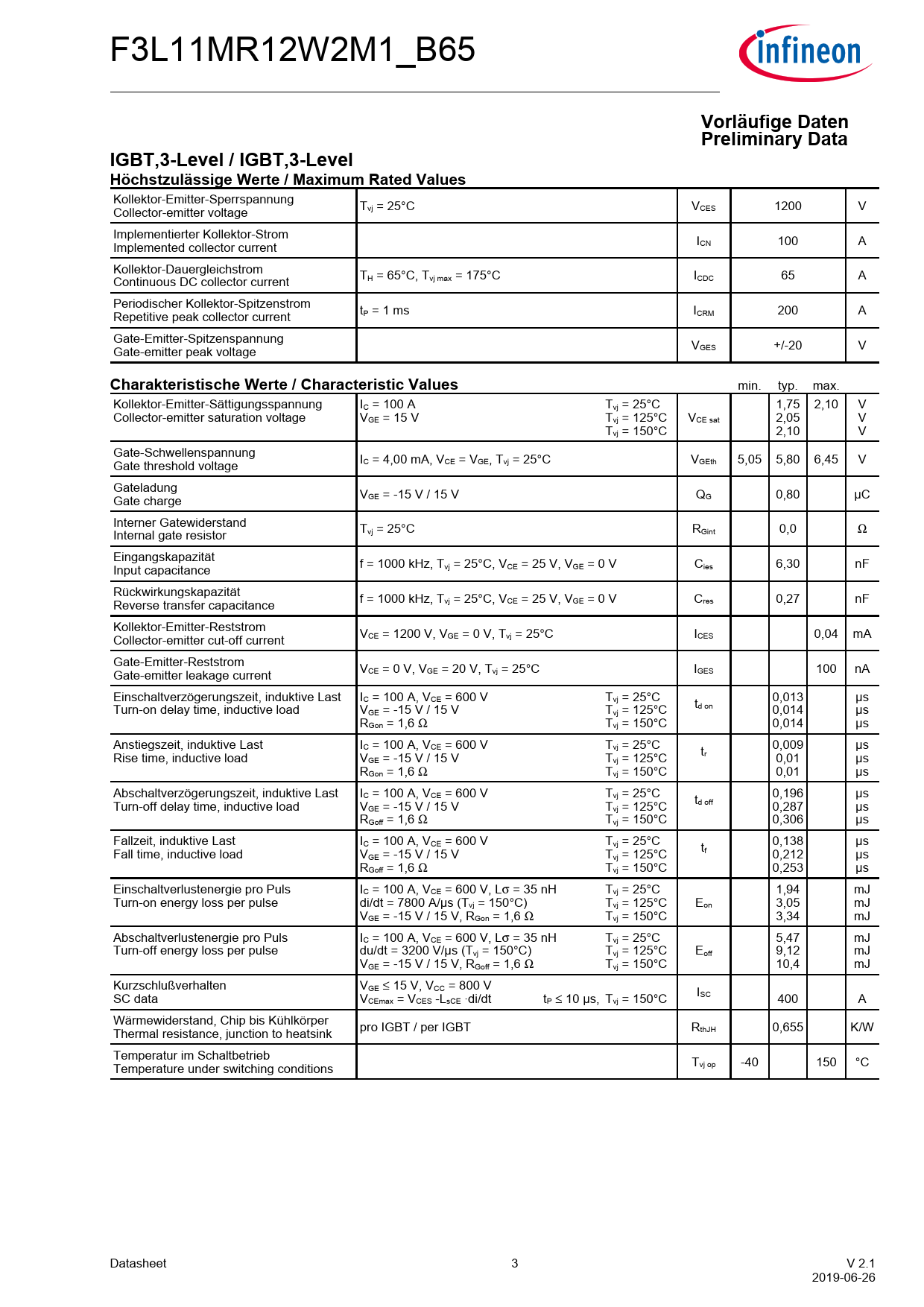 VorläufigeDaten PreliminaryData IGBT,3-Level/IGBT,3-Level HöchstzulässigeWerte/MaximumRatedValues