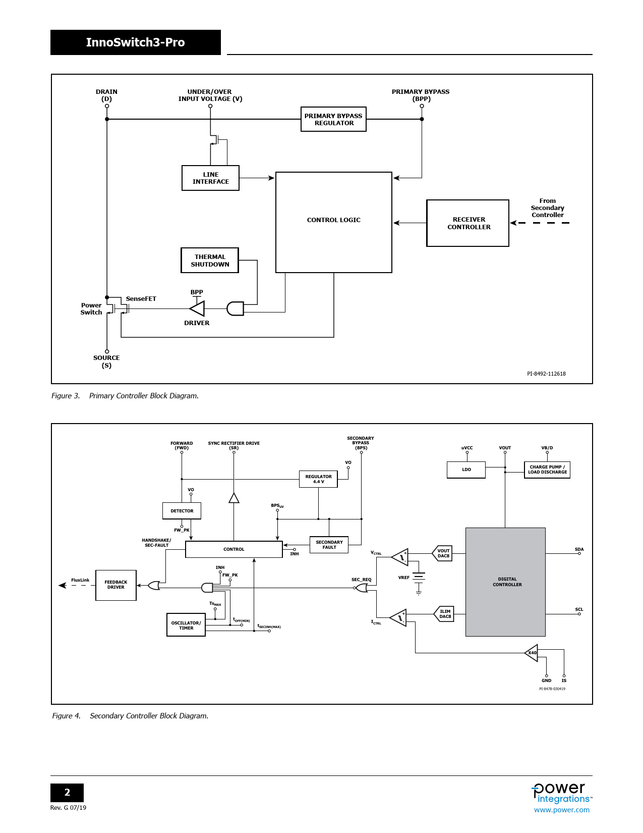 InnoSwitch3-Pro DRAIN UNDER/OVER PRIMARY BYPASS (D) INPUT VOLTAGE (V) (BPP) PRIMARY BYPASS REGULATOR LINE INTERFACE From Secondary Controller CONTROL LOGIC RECEIVER CONTROLLER THERMAL SHUTDOWN BPP SenseFET Power Switch DRIVER SOURCE (S)