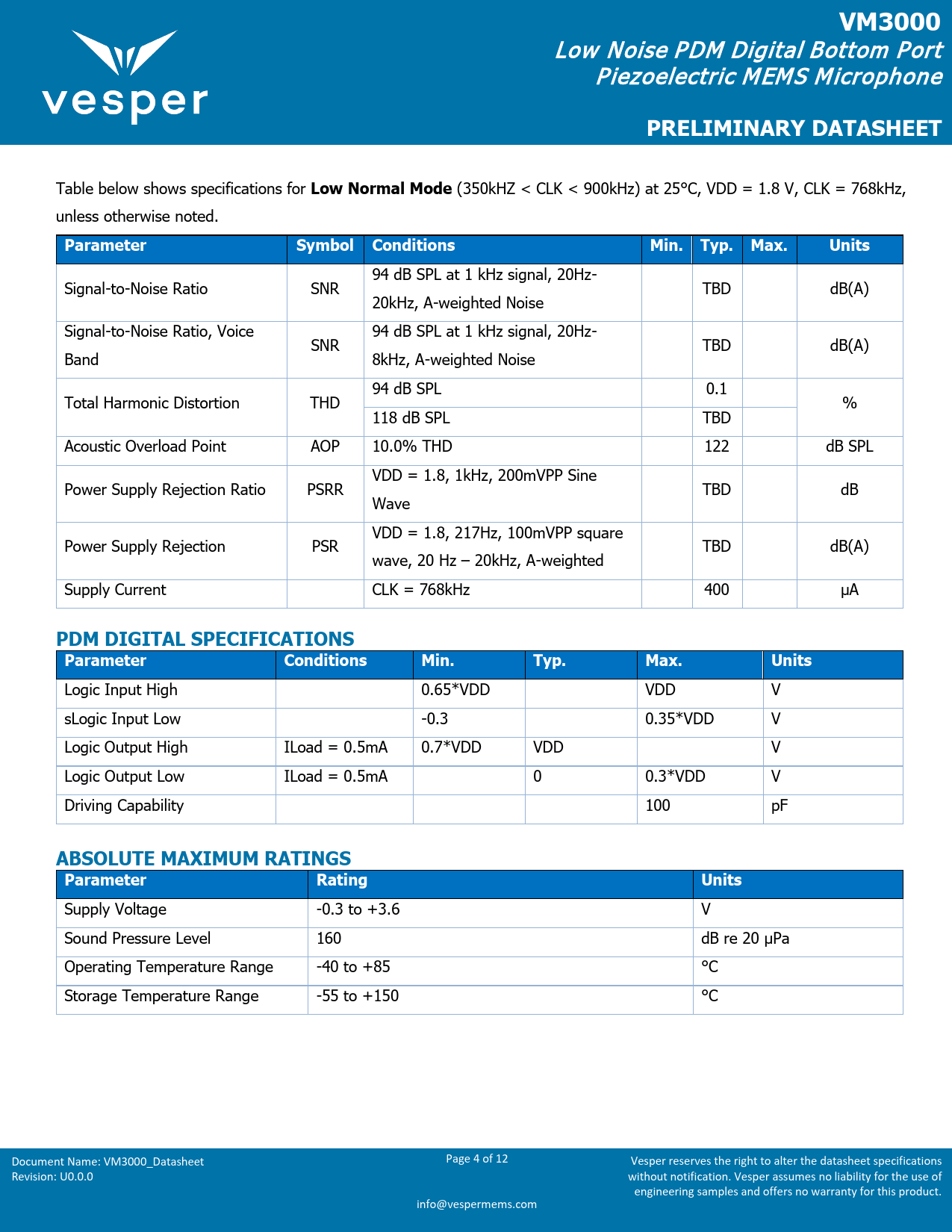 Datasheet VM3000 (Vesper) - 4