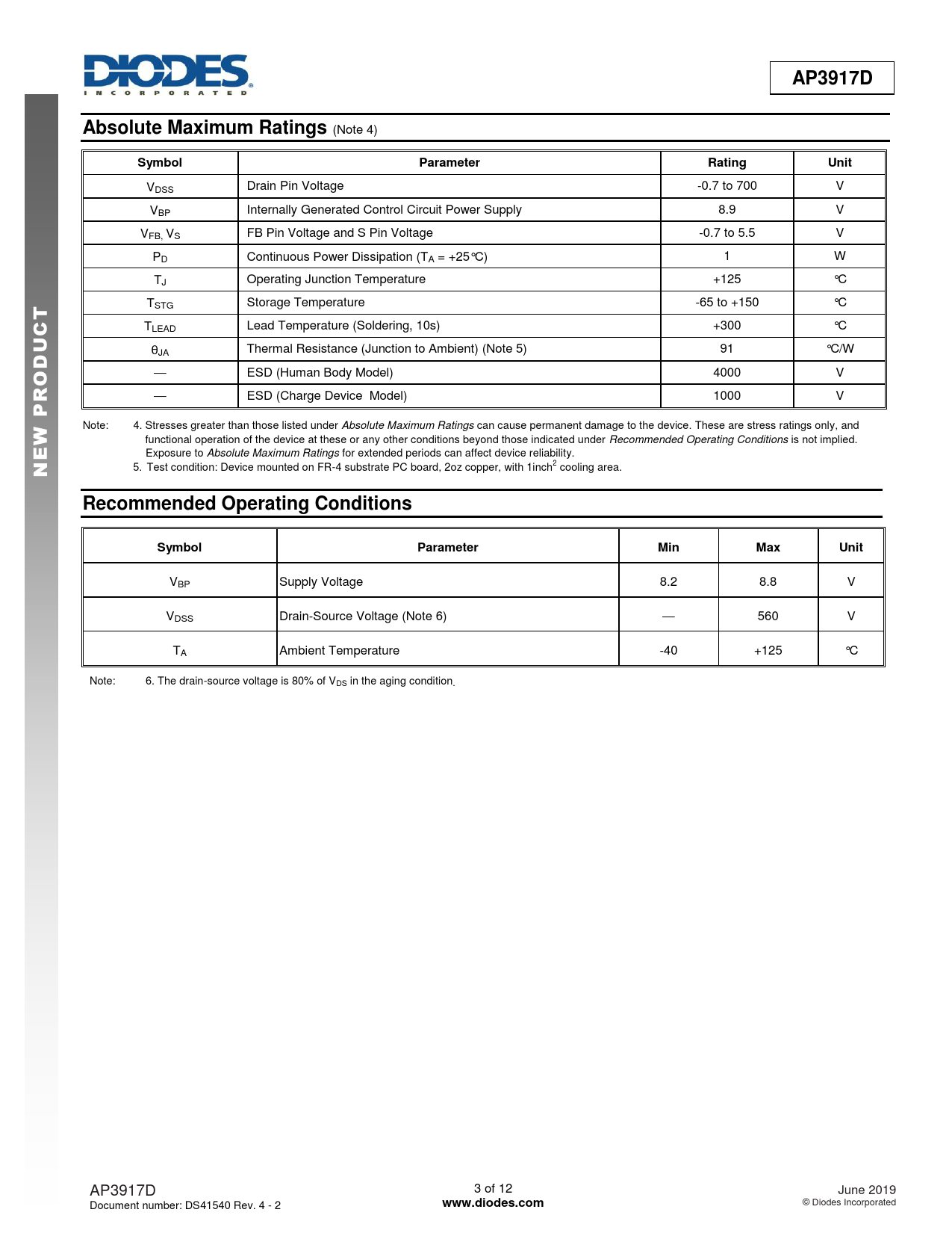 AP3917D. Absolute Maximum Ratings. Symbol. Parameter. Rating. Unit. U D. Recommended Operating Conditions. Min. Max. www.diodes.com