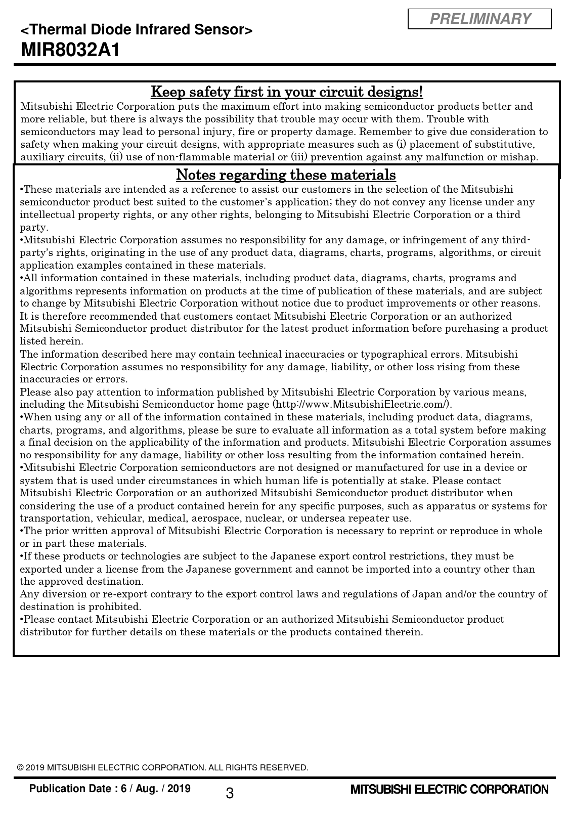 Preliminary Datasheet MIR8032A1 (Mitsubishi Electric) - 3