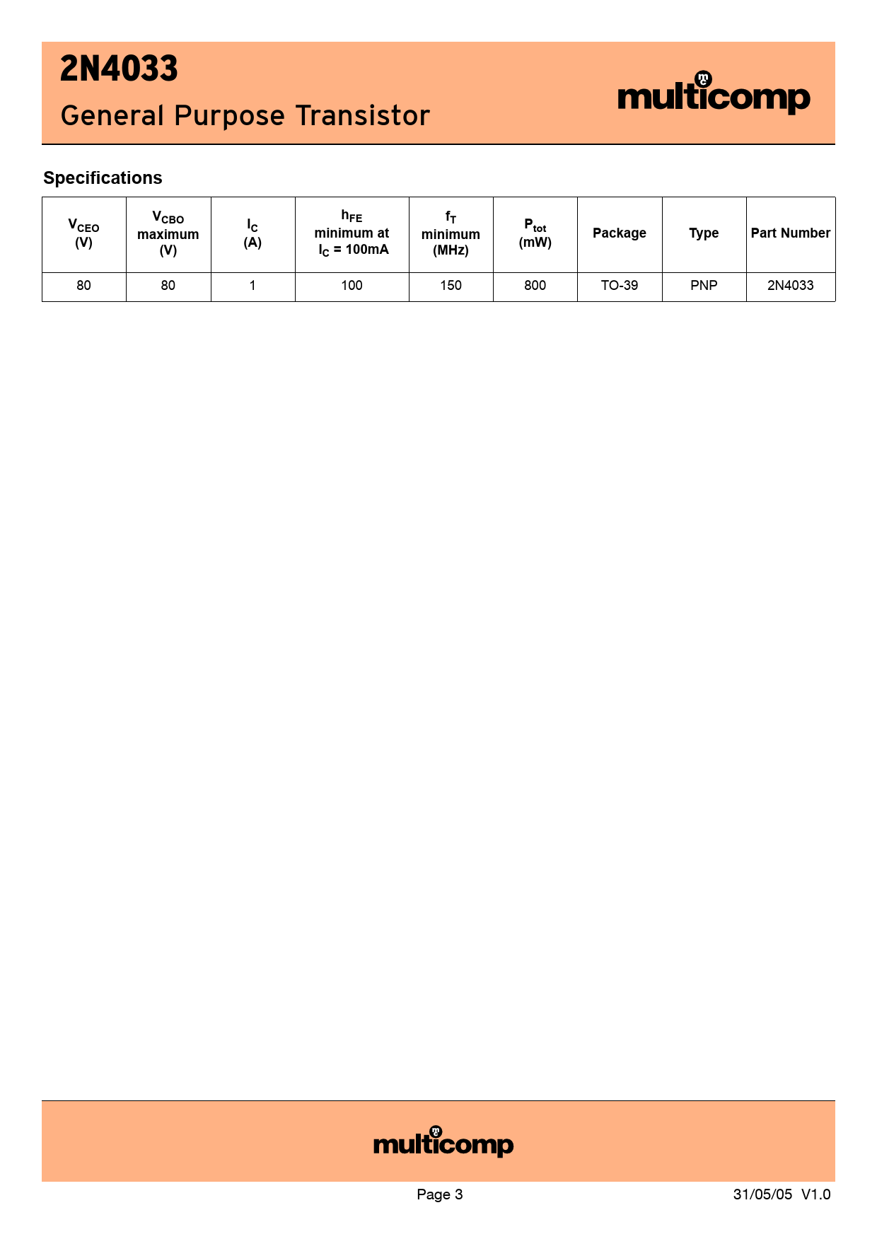 80 80 1 100 150 800 TO-39 PNP 2N4033 Page 3 31/05/05 V1.0