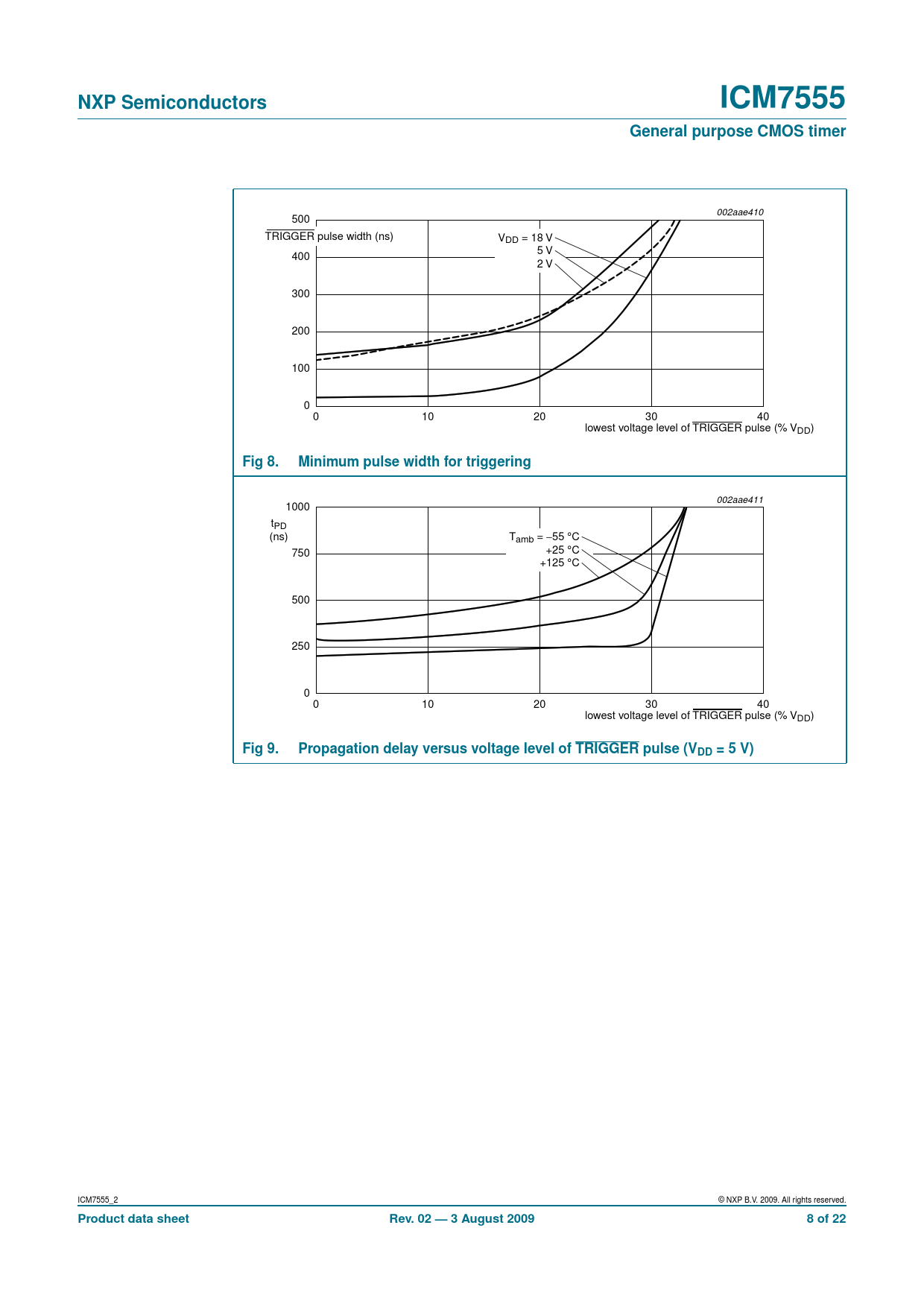 NXP Semiconductors. ICM7555. General purpose CMOS timer. Fig 8. Minimum pulse width for triggering. Fig 9