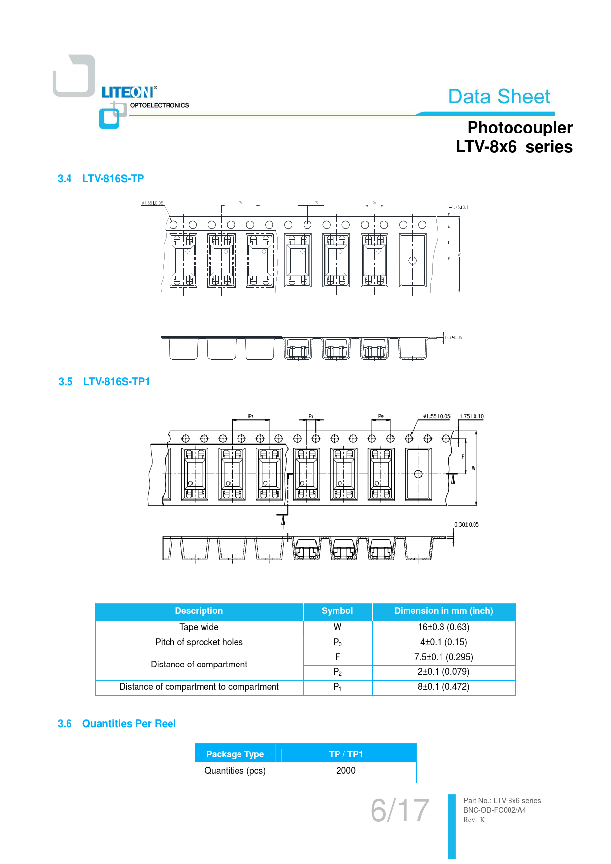 Photocoupler. LTV-8x6 series. 3.4 LTV-816S-TP. 3.5 LTV-816S-TP1. Description. Symbol. Dimension in mm (inch). 3.6 Quantities Per Reel