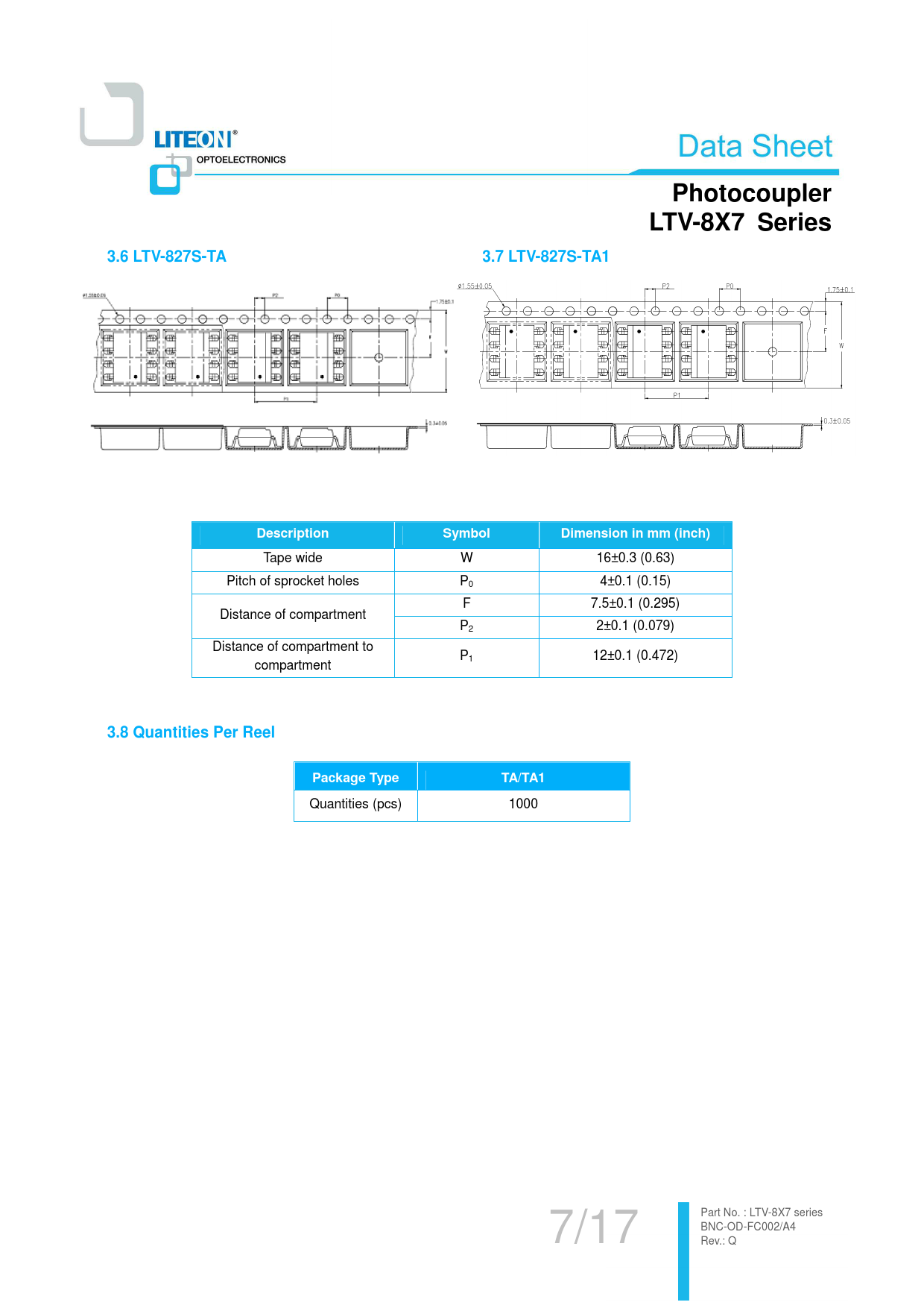 Photocoupler LTV-8X7 Series 3.6 LTV-827S-TA 3.7 LTV-827S-TA1 Description Symbol Dimension in mm (inch)