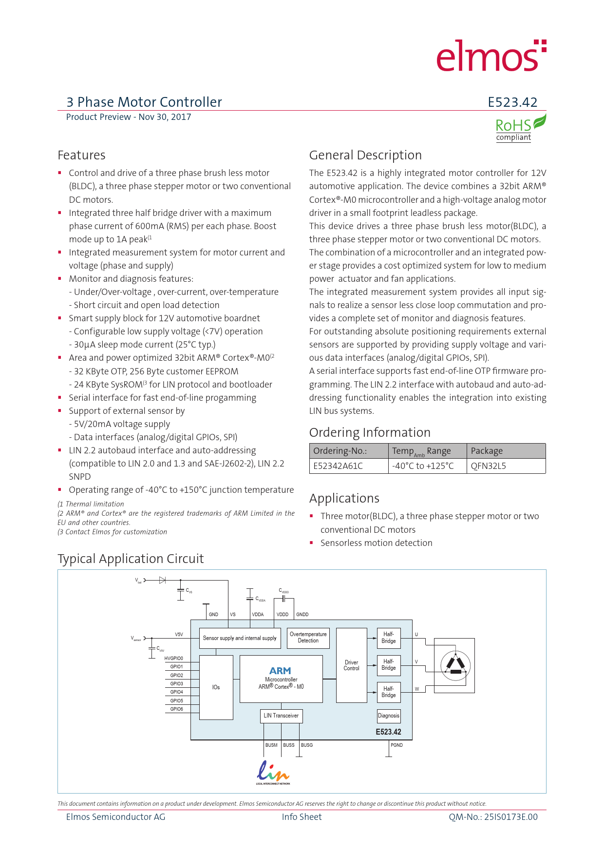 BUSM BUSS BUSG PGND This document contains information on a product under development. Elmos Semiconductor AG reserves the right to change or discontinue this product without notice. Elmos Semiconductor AG Info Sheet QM-No.: 25IS0173E.00