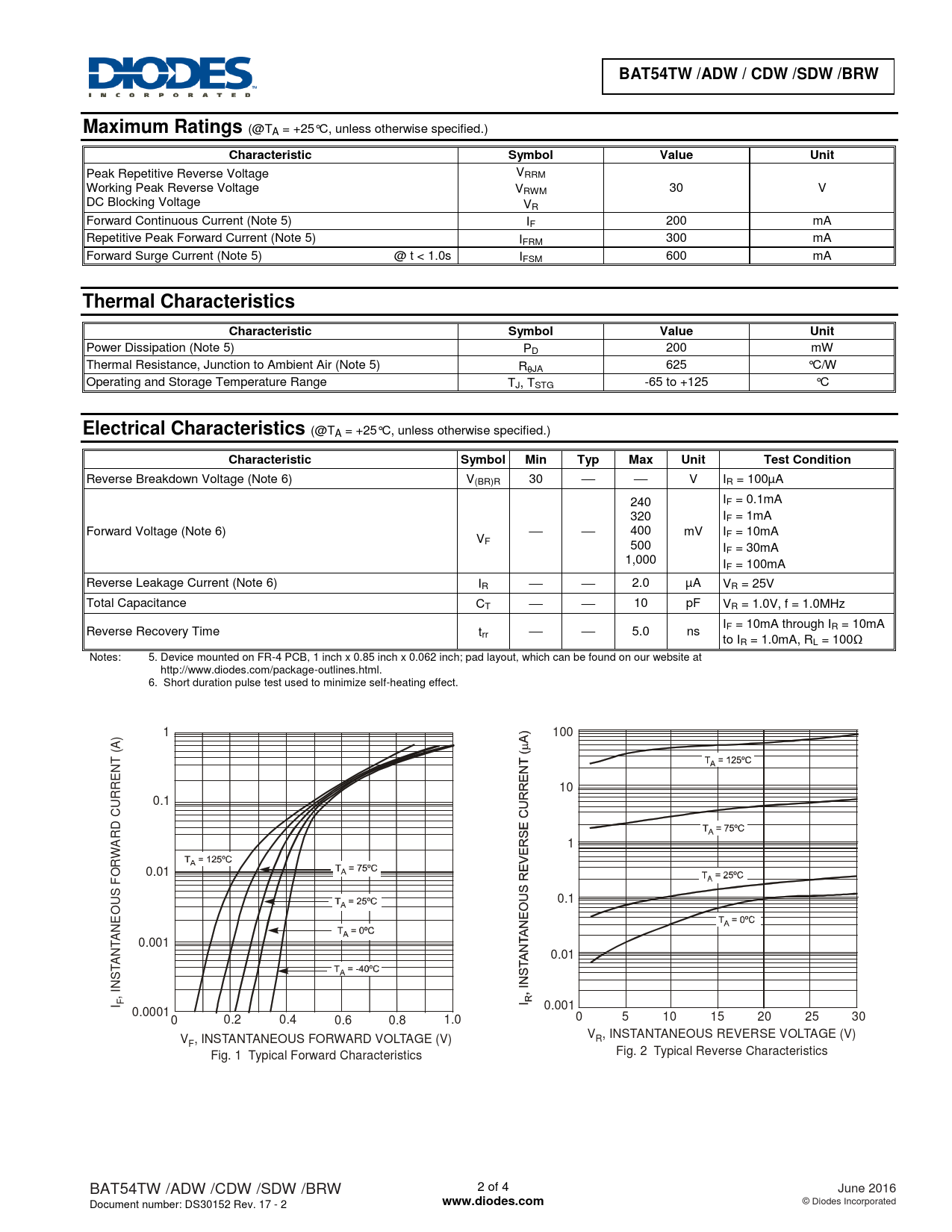 Datasheet BAT54TW, BAT54ADW, BAT54CDW, BAT54SDW, BAT54BRW (Diodes) - 2