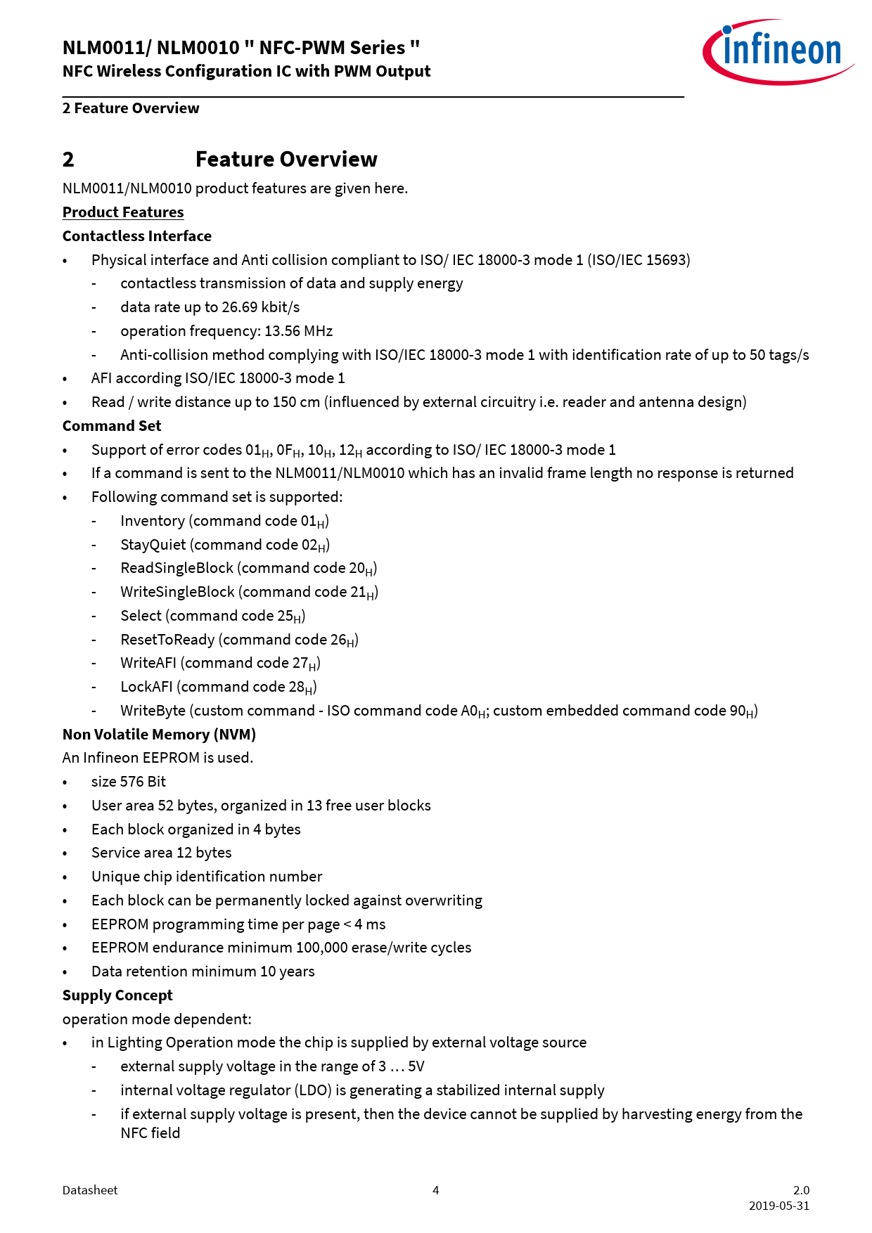 Datasheet NLM0011 / NLM0010 NFC-PWM Series (Infineon) - 4