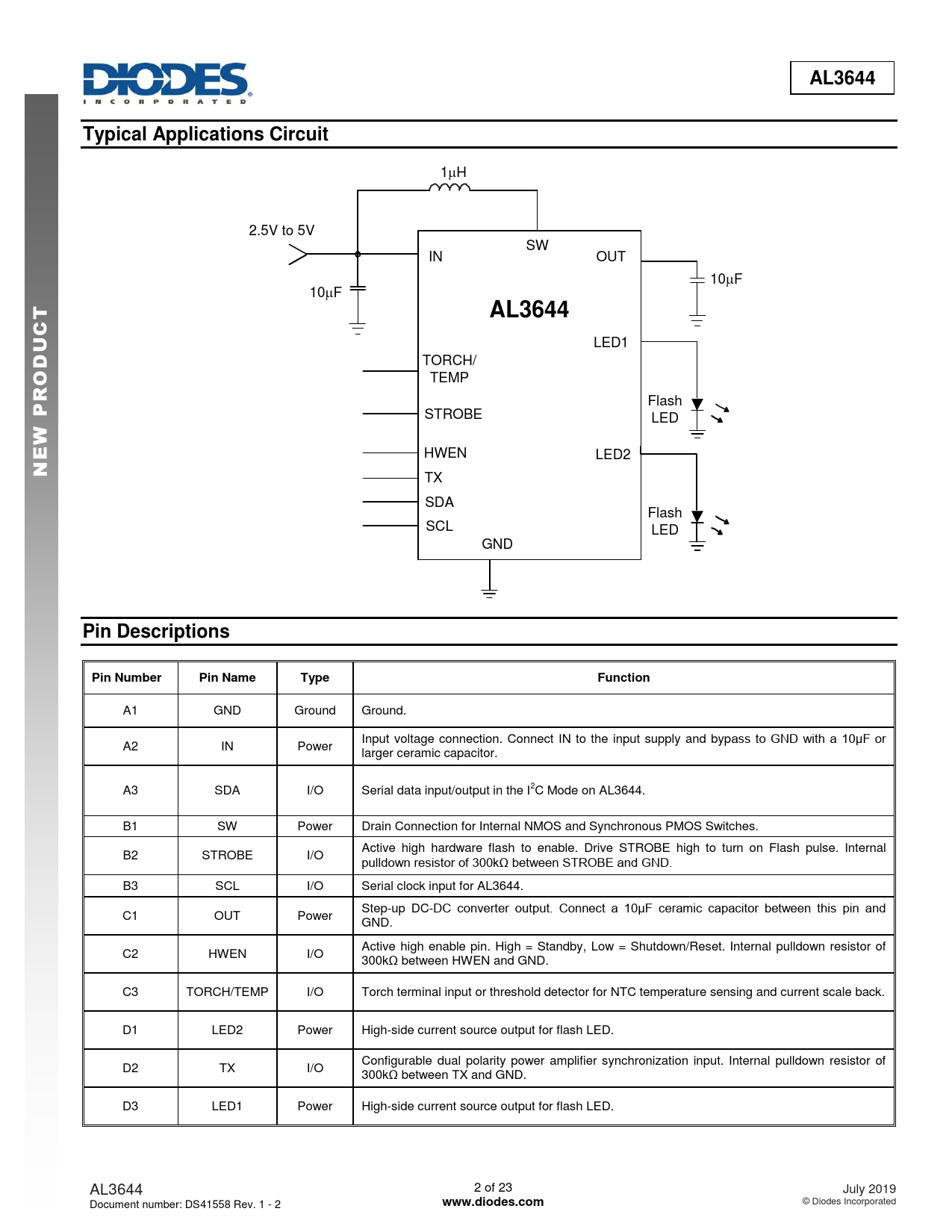 | Páginas / Página | 23 / 2 — AL3644. Typical Applications Circuit. C U. R P. W E. Pin Descriptions. … |