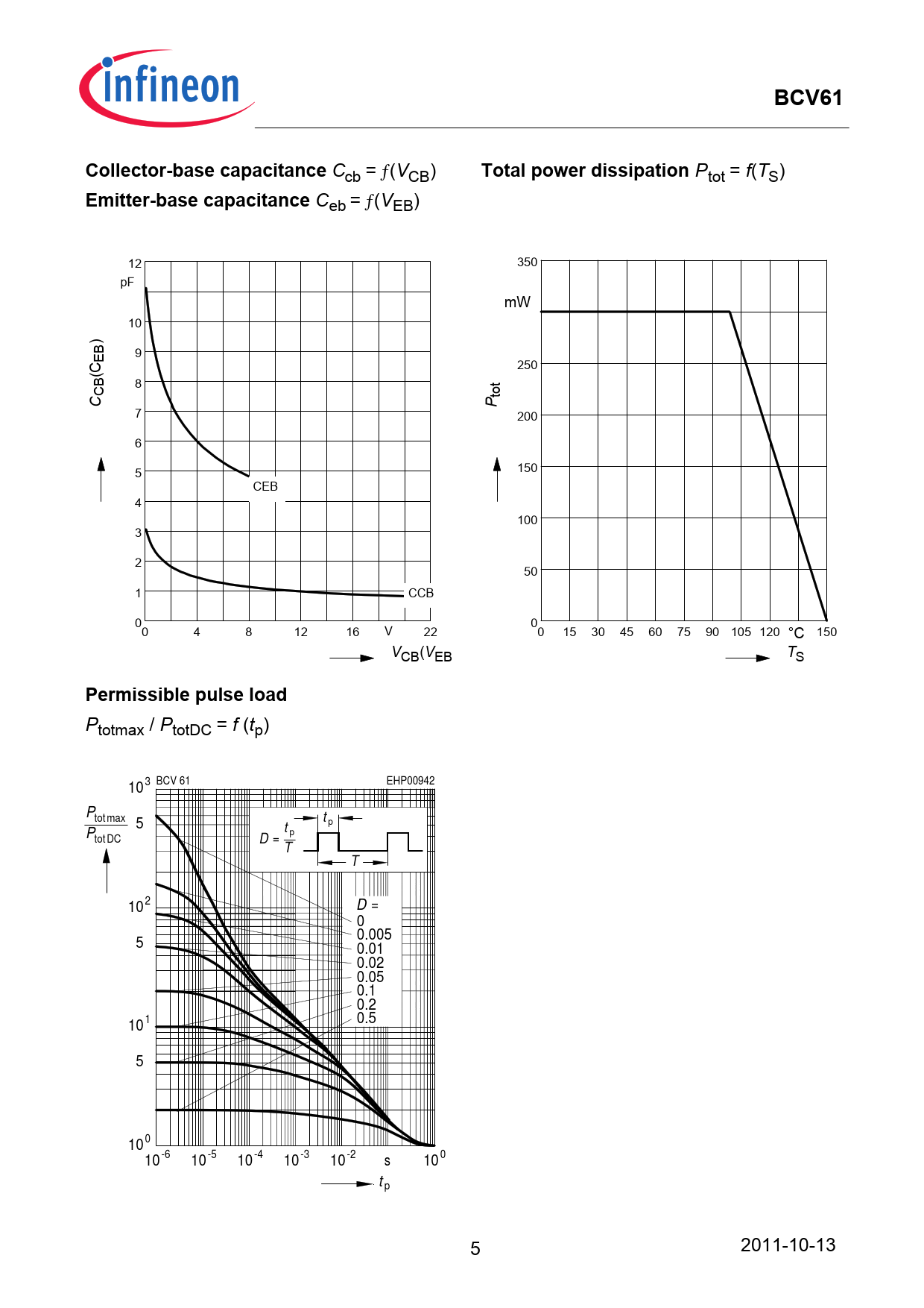 Ptotmax / PtotDC = f (tp) 3 BCV 61 EHP00942 10 Ptotmax 5 t p t p PtotDC D = T T 102 D = 0 0.005 5 0.01 0.02 0.05 0.1 0.2 0.5 101 5 0 10 10-6 10-5 10-4 10-3 10-2 100 s t p 5 2011-10-13