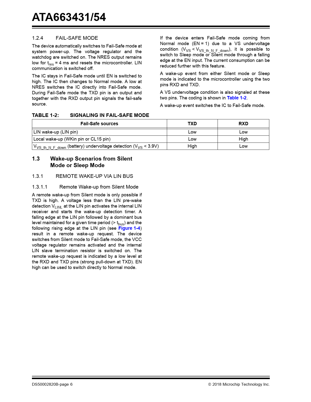 ATA663431/54. Table 1-2. TABLE 1-2:. SIGNALING IN FAIL-SAFE MODE. Fail-Safe sources. TXD. RXD. 1.3