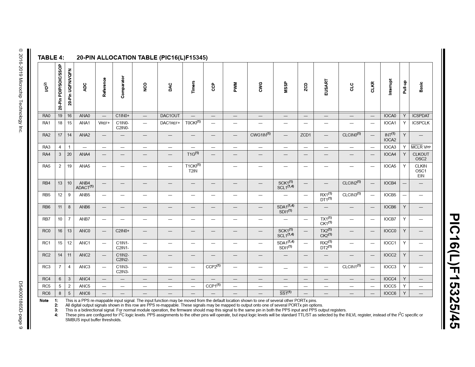 TABLE 4: 20-PIN ALLOCATION TABLE (PIC16(L)F15345)