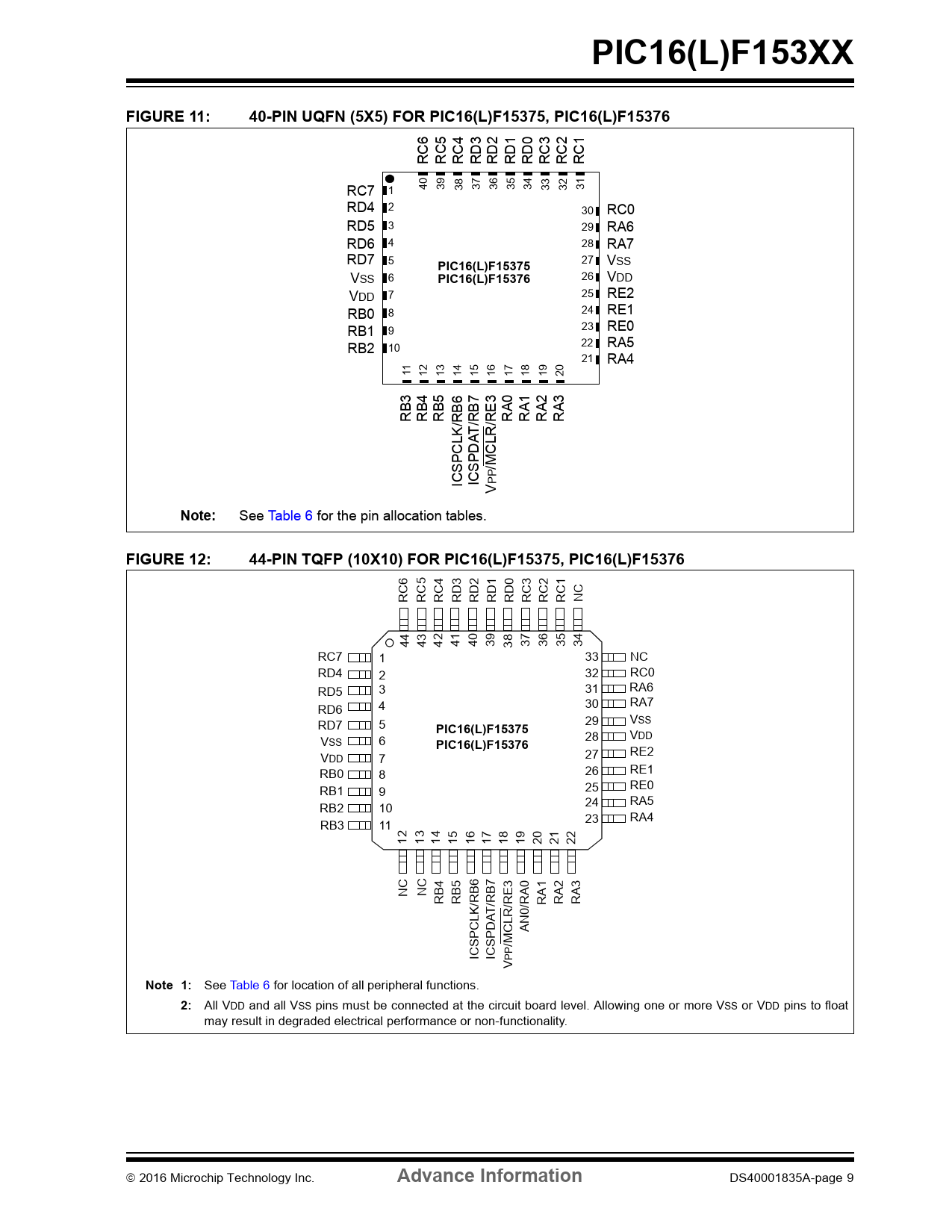 PIC16(L)F153XX. FIGURE 11:. 40-PIN UQFN (5X5) FOR PIC16(L)F15375, PIC16(L)F15376. PIC16(L)F15375. PIC16(L)F15376. Note:. FIGURE 12: