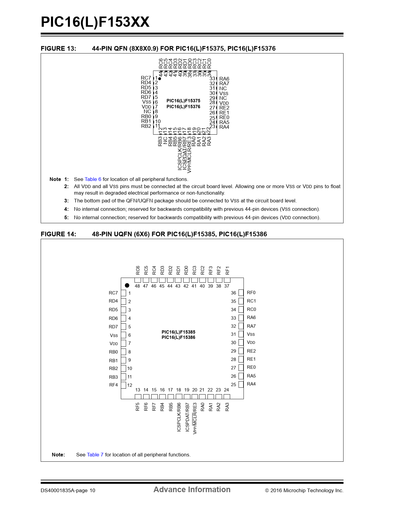 PIC16(L)F153XX. FIGURE 13:. 44-PIN QFN (8X8X0.9) FOR PIC16(L)F15375, PIC16(L)F15376. PIC16(L)F15375. PIC16(L)F15376. Note 1: