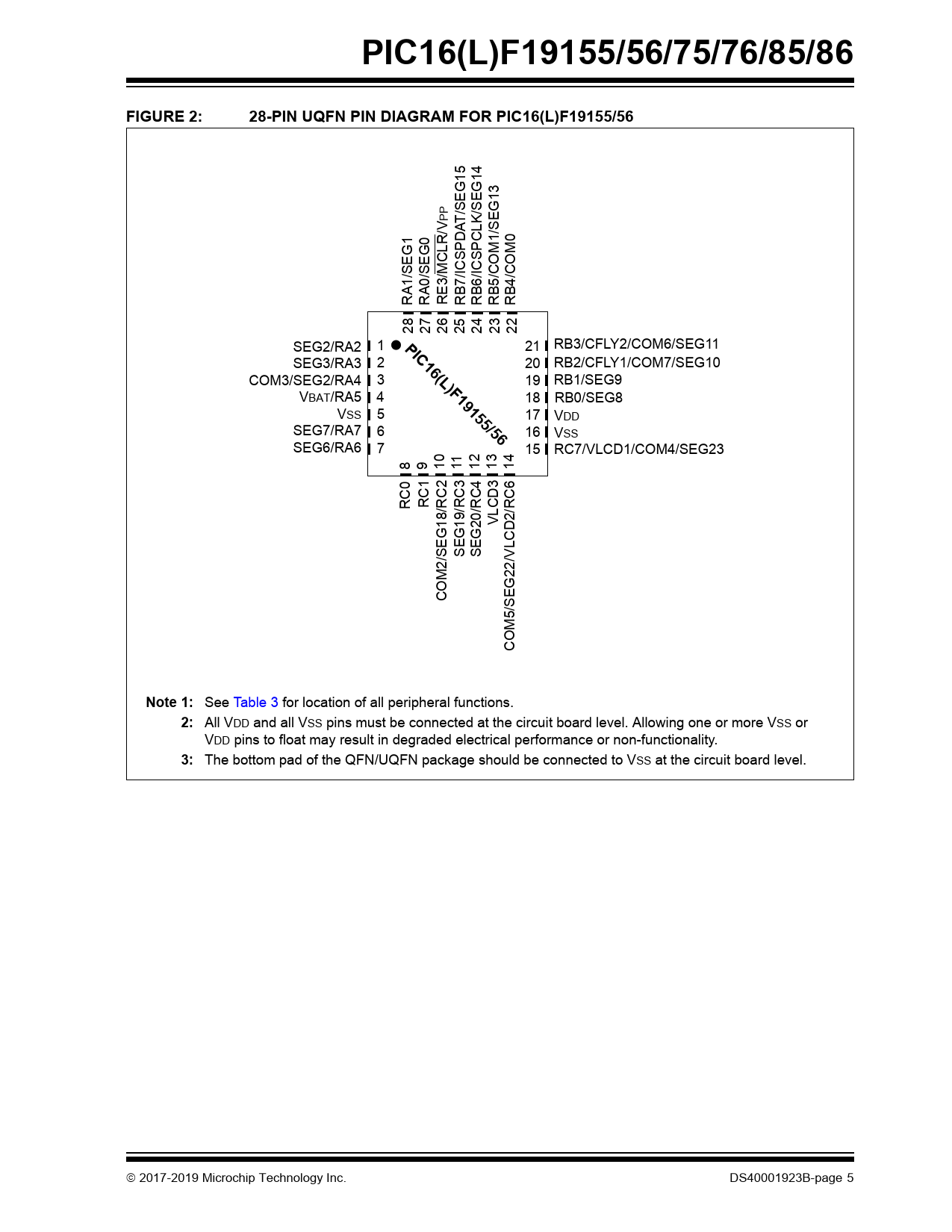 | Páginas / Página | 754 / 5 — PIC16(L)F19155/56/75/76/85/86. FIGURE 2:. 28-PIN UQFN PIN DIAGRAM FOR … |