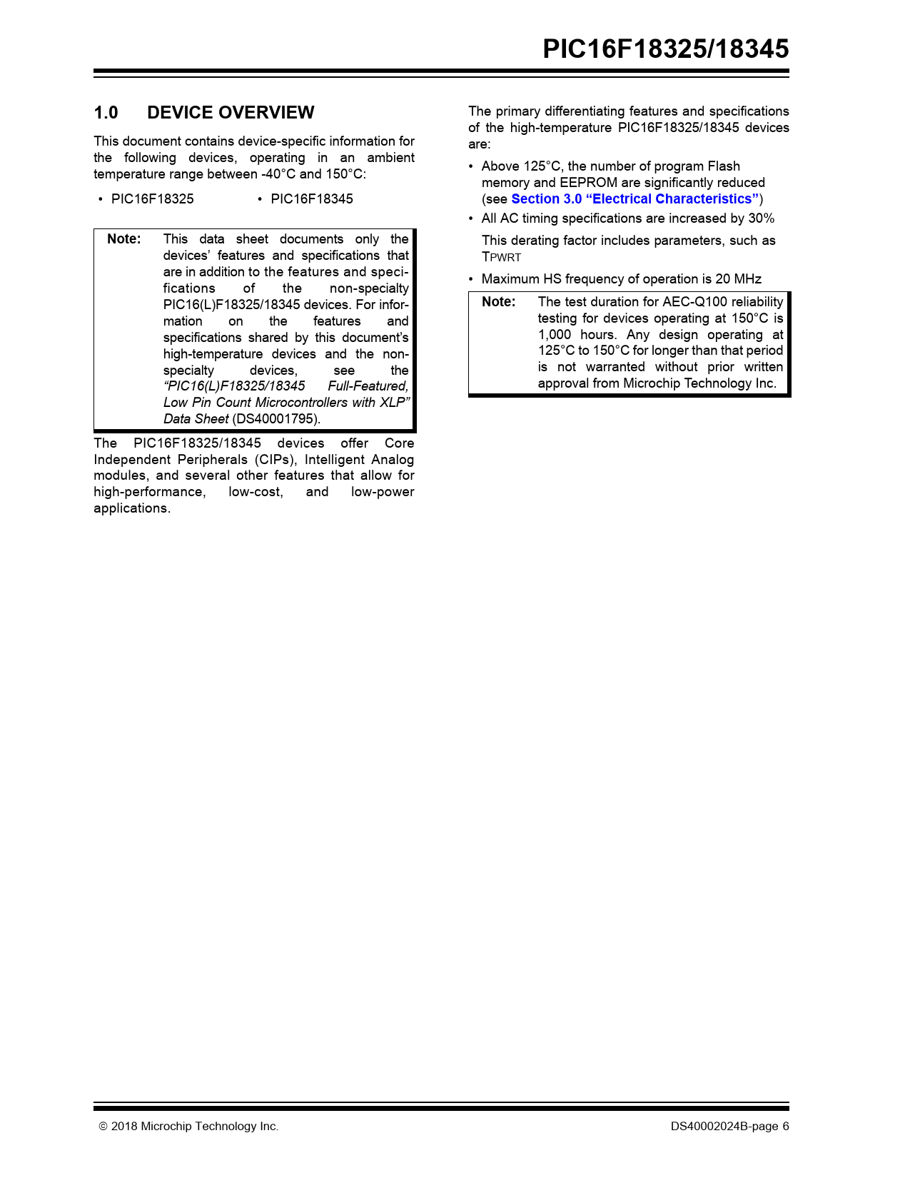 PIC16F18325/18345. 1.0. DEVICE OVERVIEW. Section 3.0 “Electrical Characteristics”. Note: