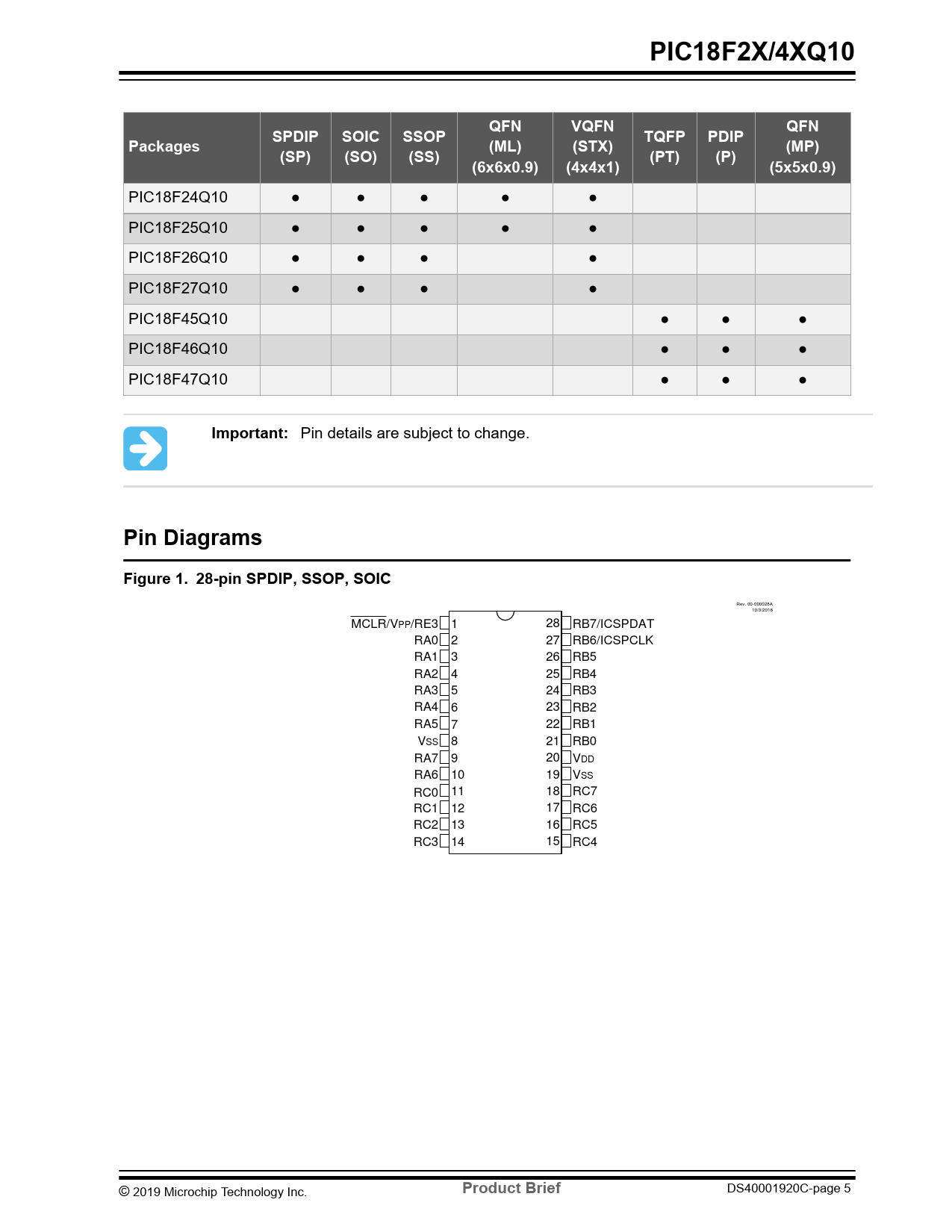 PIC18F2X/4XQ10. QFN. VQFN. SPDIP. SOIC. SSOP. TQFP. PDIP. Packages. (ML). (STX). (MP). (SP). (SO). (SS). (PT). (P). (6x6x0.9). (4x4x1). (5x5x0.9). Important: