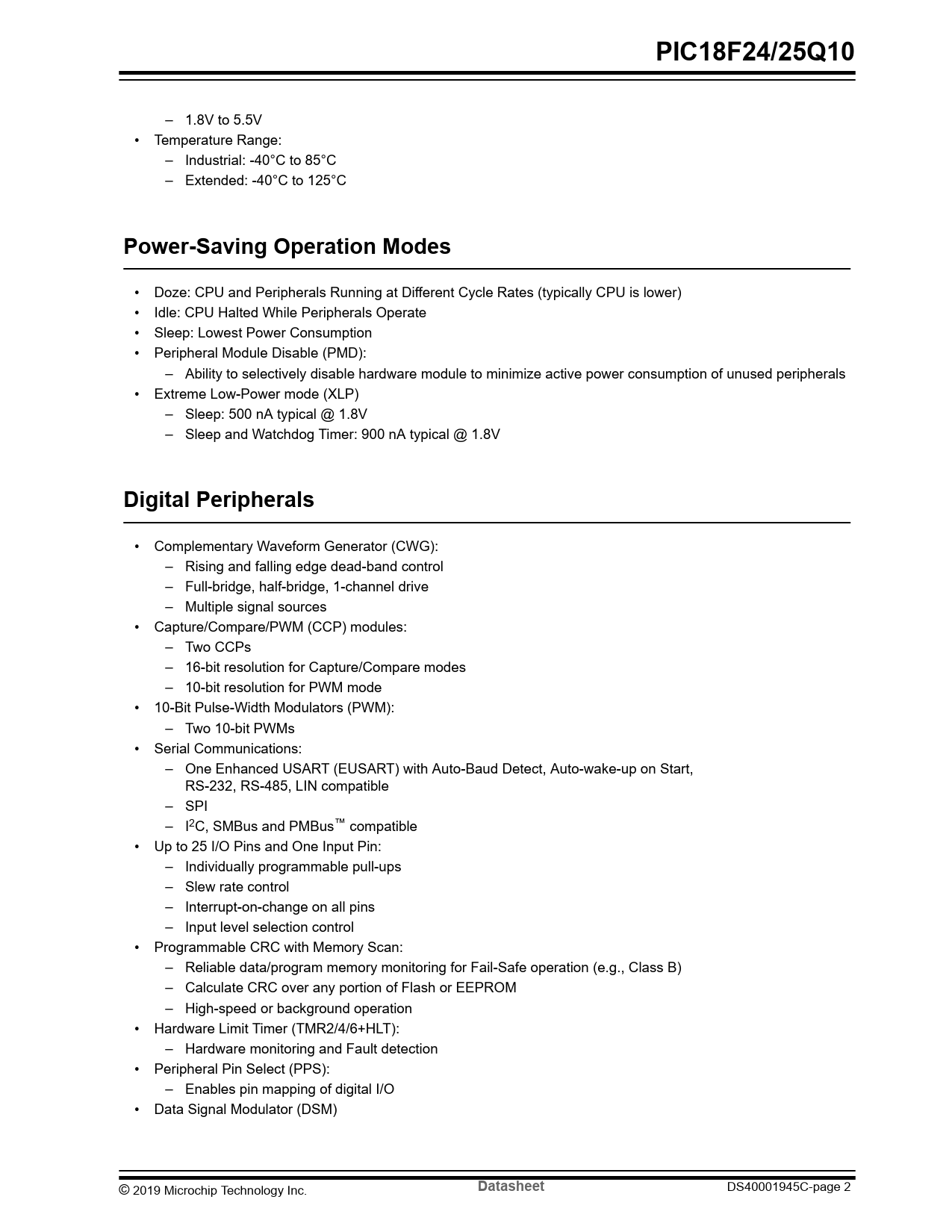 Datasheet PIC18F24Q10, PIC18F25Q10 (Microchip) - 2