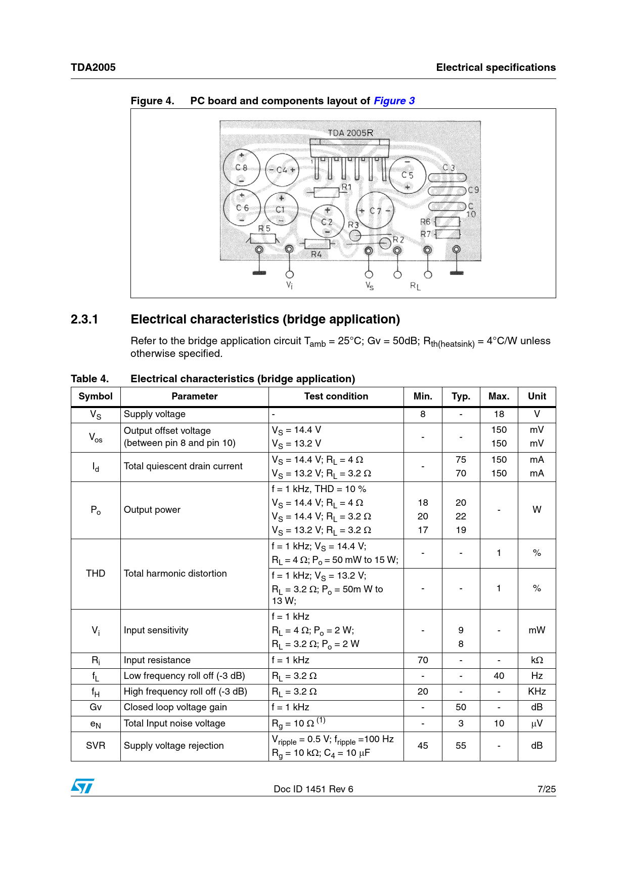 Páginas / Página25 / 7 — TDA2005. Electrical specifications. Figure 4. PC board and components …