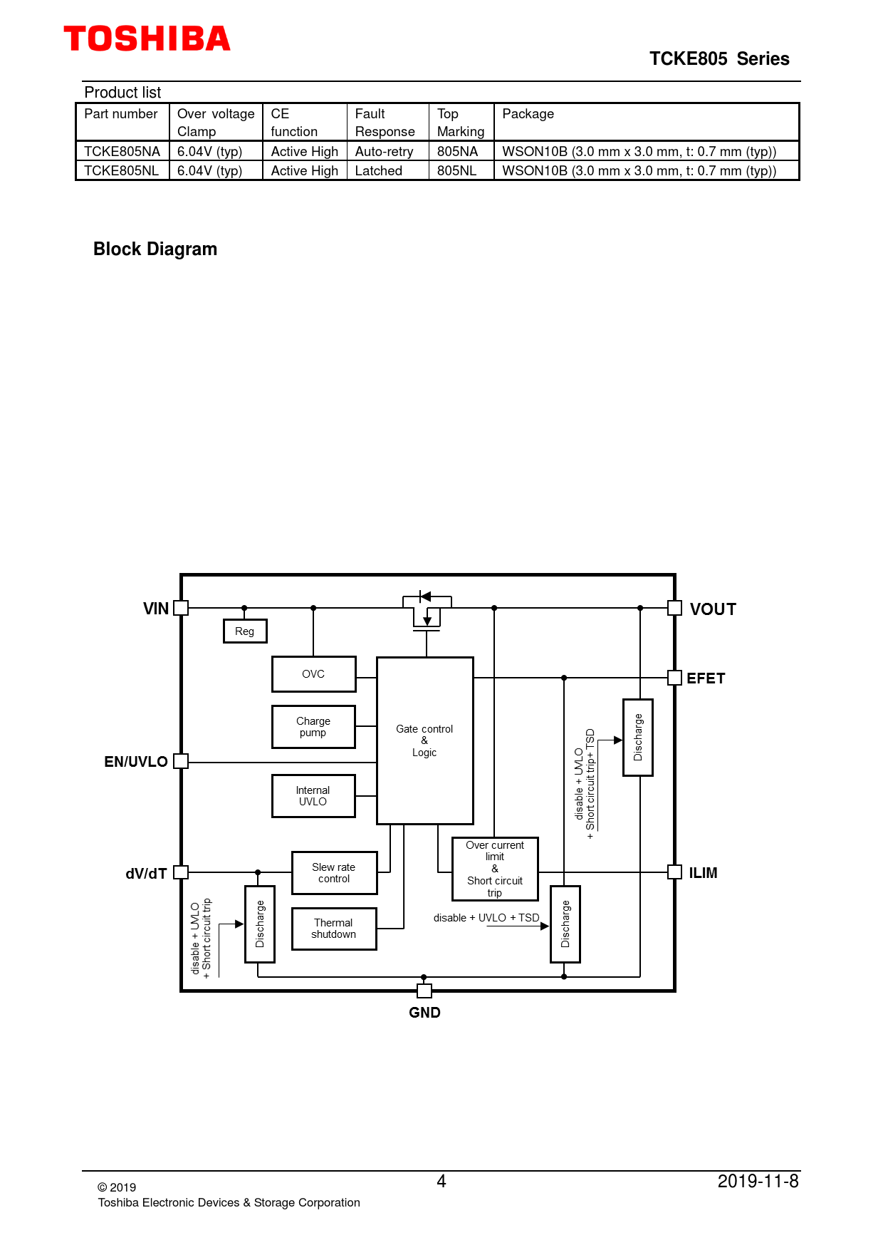 4 2019-11-8 © 2019 Toshiba Electronic Devices & Storage Corporation