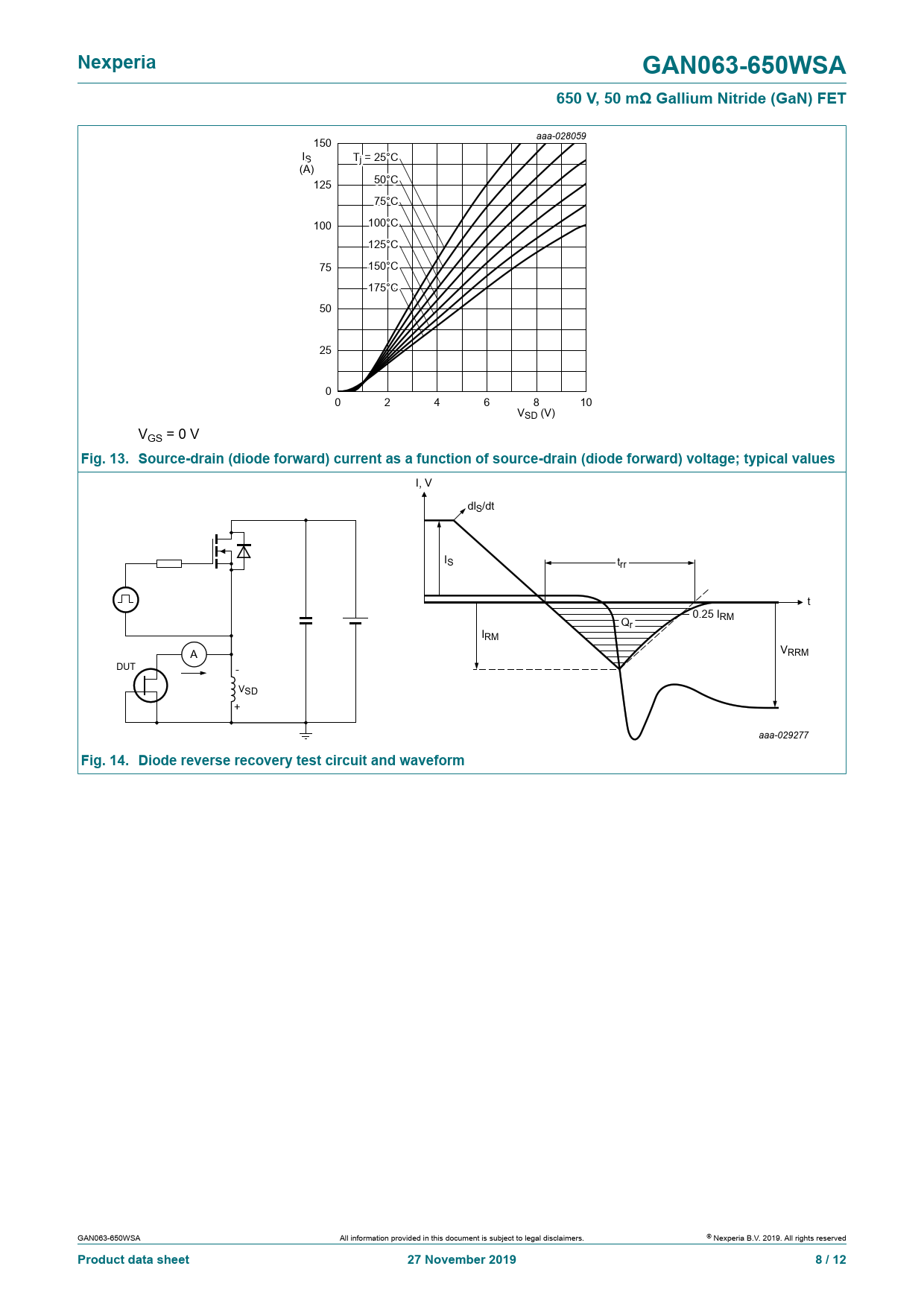| Páginas / Página | 12 / 8 — Nexperia. GAN063-650WSA. 650 V, 50 mΩ Gal ium Nitride (GaN) FET |