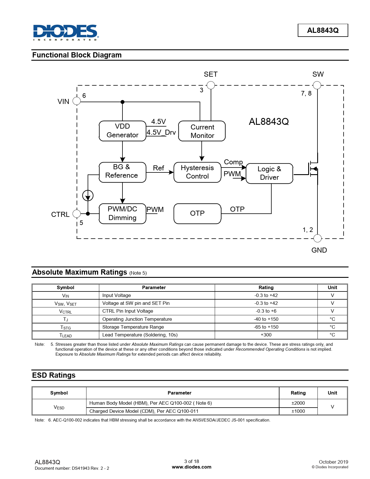 AL8843Q. Functional Block Diagram. Absolute Maximum Ratings. Symbol. Parameter. Rating. Unit. ESD Ratings. www.diodes.com