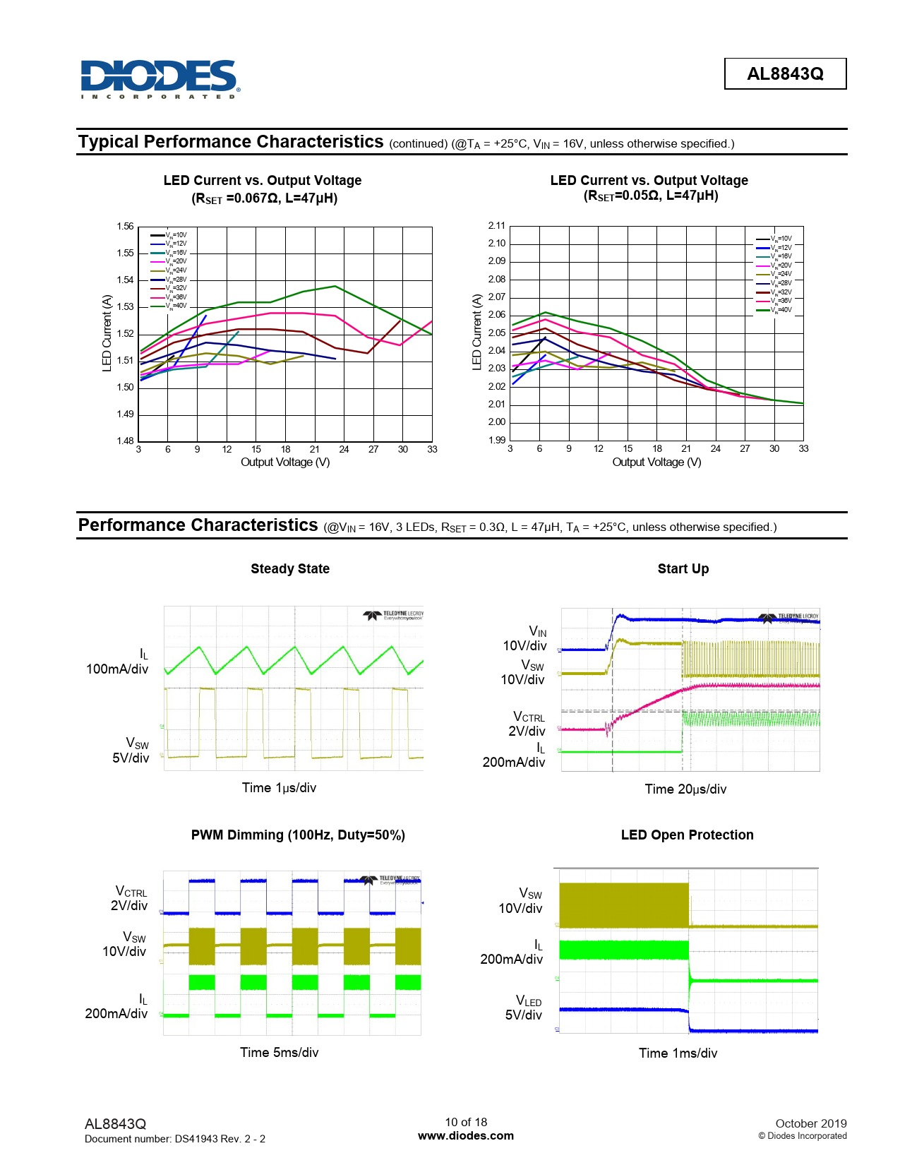AL8843Q. Typical Performance Characteristics. LED Current vs. Output Voltage. (RSET =0.067Ω, L=47μH). (RSET=0.05Ω, L=47μH)