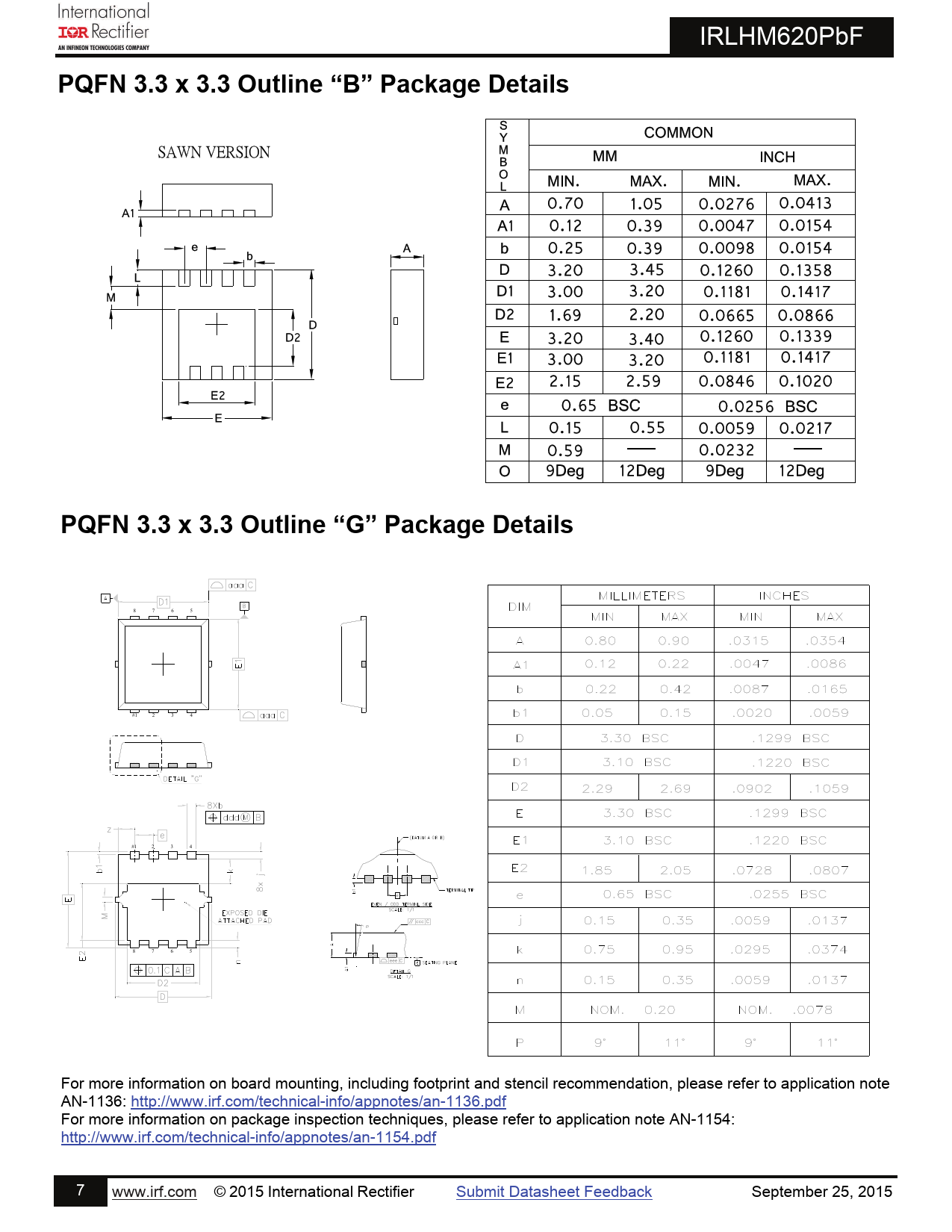 PQFN 3.3 x 3.3 Outline “B” Package Details. PQFN 3.3 x 3.3 Outline “G” Package Details