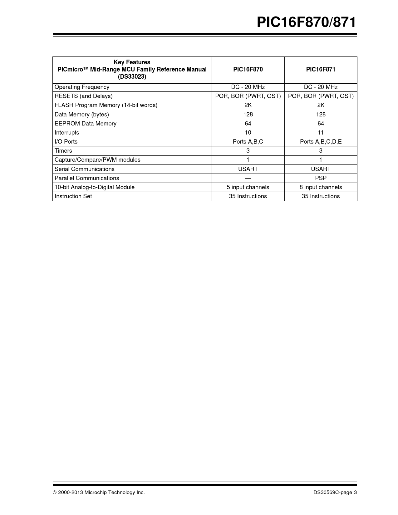 Datasheet PIC16F870, PIC16F871 (Microchip) - 3