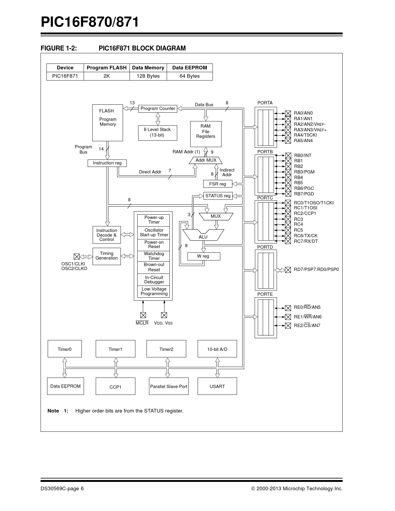 PIC16F870/871. FIGURE 1-2:. PIC16F871 BLOCK DIAGRAM. Device. Program FLASH. Data Memory. Data EEPROM. Note