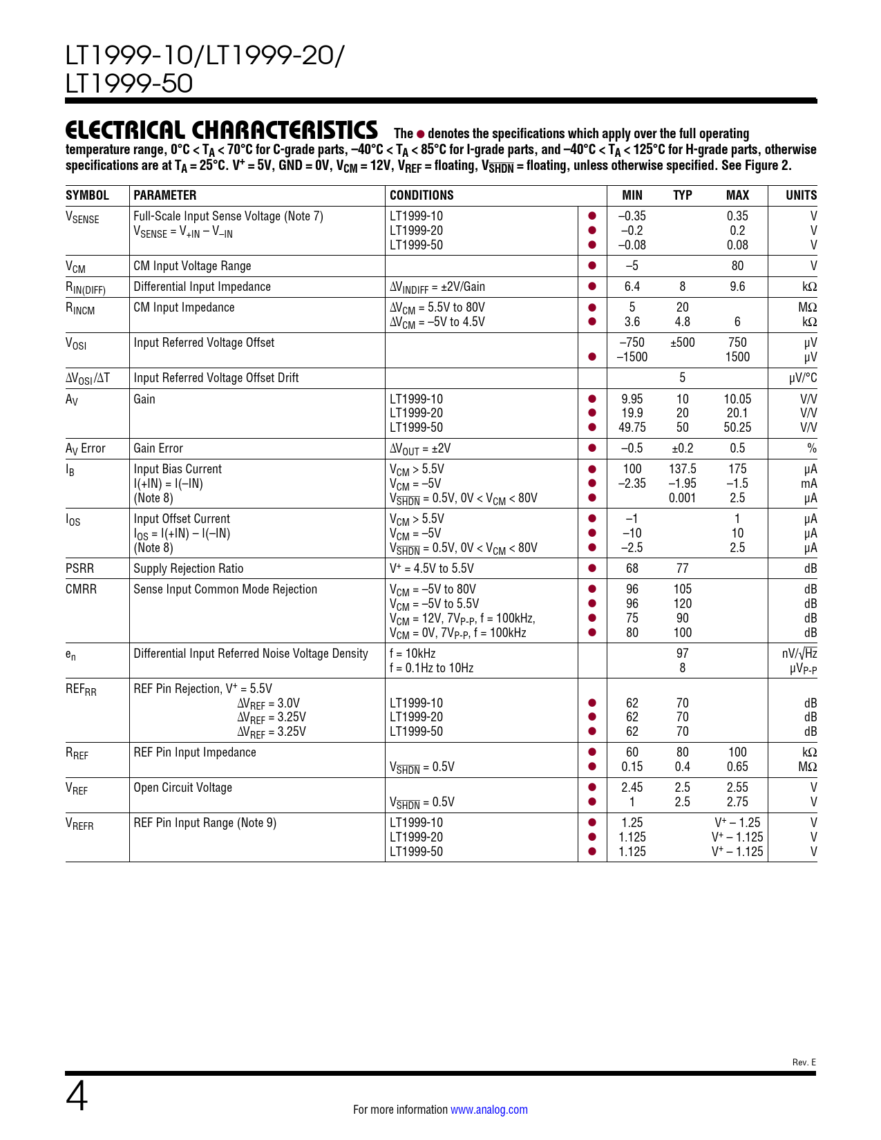 Datasheet LT1999-10, LT1999-20, LT1999-50 (Analog Devices) - 4