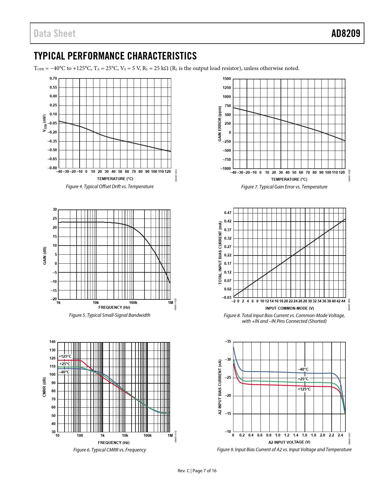 Data Sheet. AD8209. TYPICAL PERFORMANCE CHARACTERISTICS. 0.70. 1500. 0.55. 1250. 0.40. 1000. 0.25. ) 750. m p. 0.10. p 500. (m I –0.05. OR 250. V –0.20