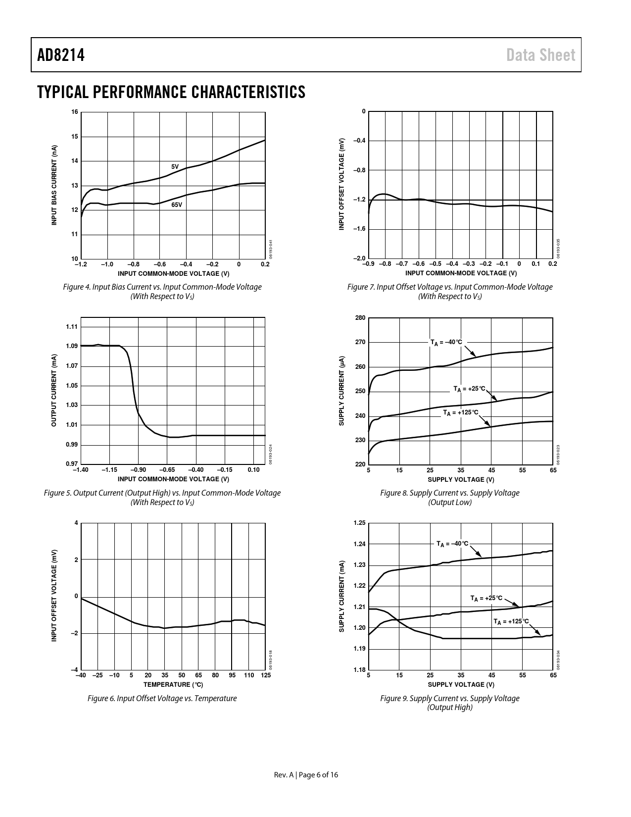 AD8214. Data Sheet. TYPICAL PERFORMANCE CHARACTERISTICS. –0.4. –0.8. OLTA. CURRE. T V E. –1.2. 65V. T OFFS U. INP. P IN. –1.6. –2.0. –1.0. –0.6. –0.2. 0.2