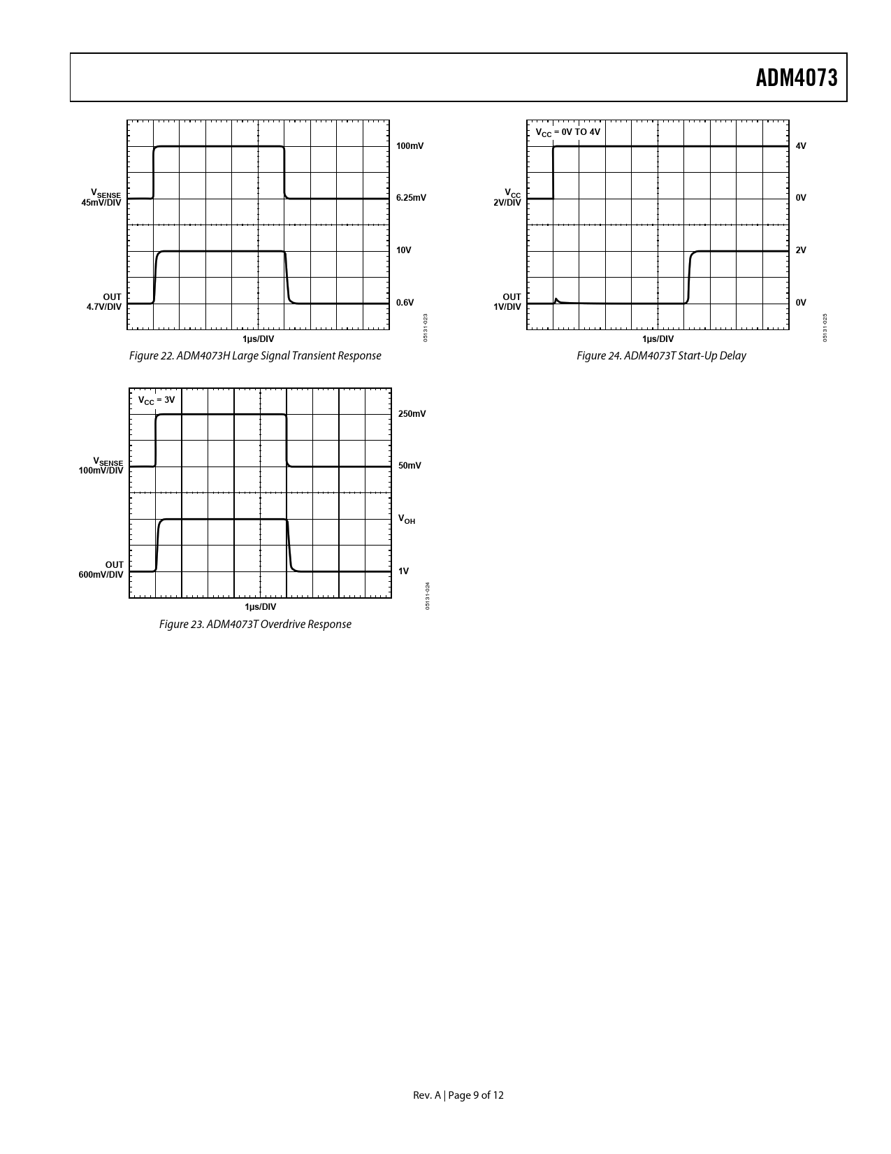 | Páginas / Página | 12 / 9 — ADM4073. VCC = 0V TO 4V. 100mV. VSENSE. 6.25mV. 45mV/DIV. 2V/DIV. 10V. … |
