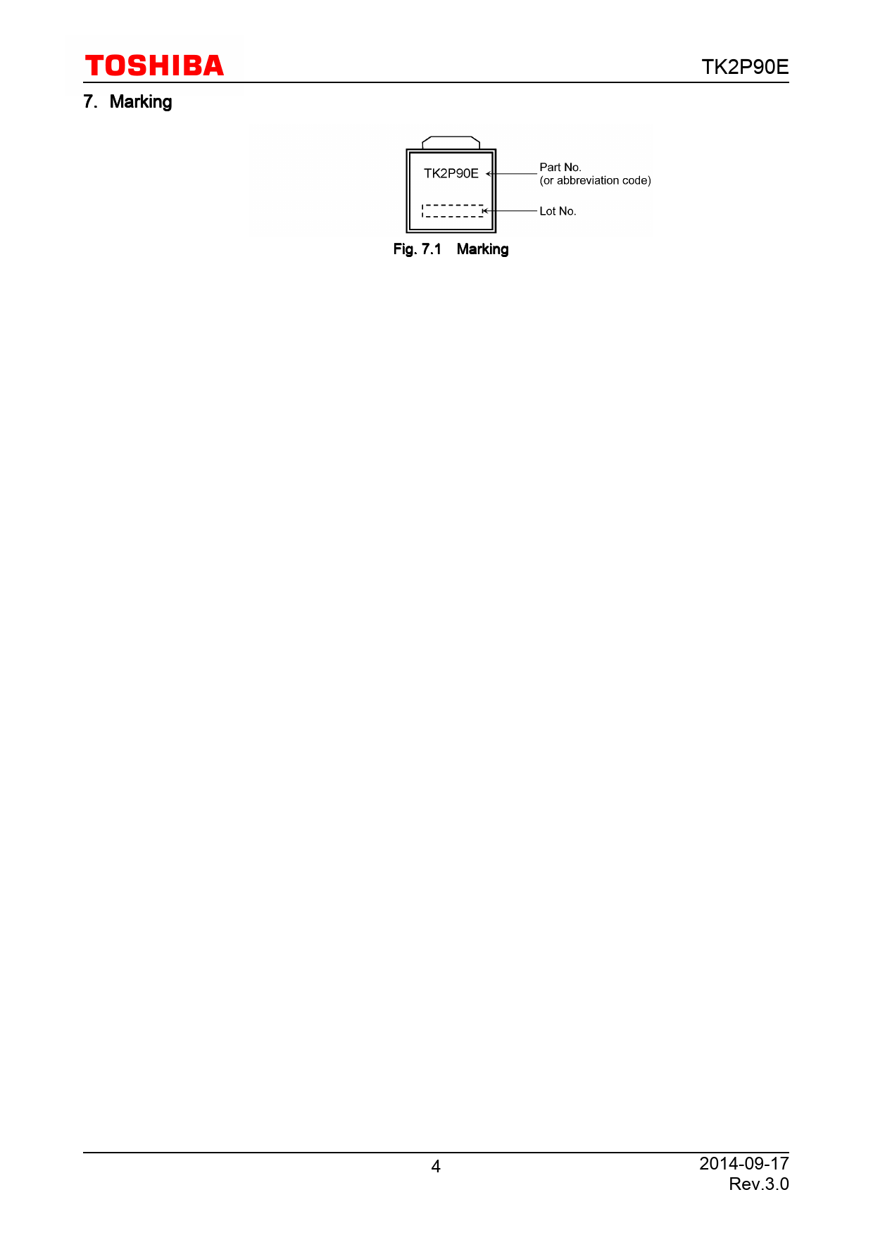 — TK2P90E. 7. Marking. Fig. 7.1. Marking. 4. 2014-09-17. Rev.3.0
