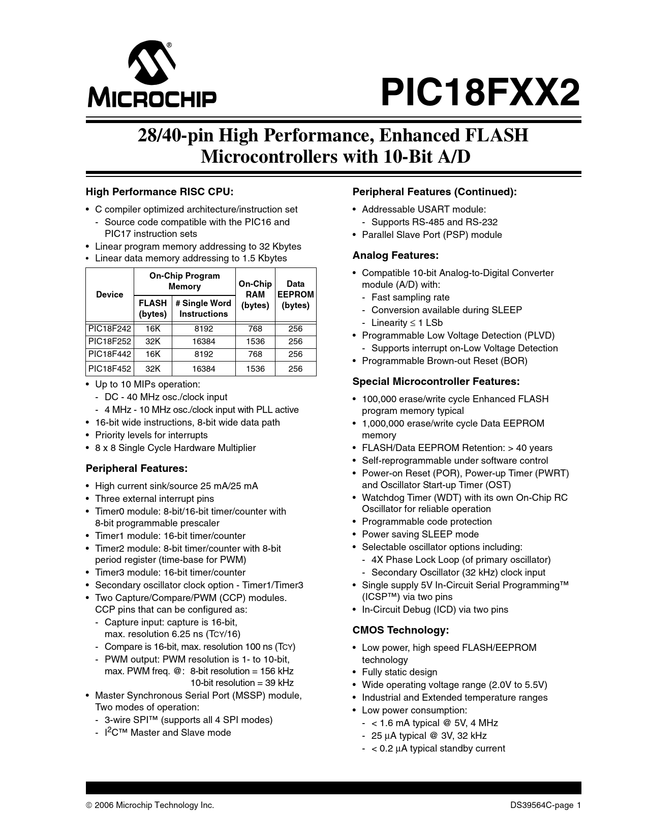 Datasheet PIC18F242, PIC18F252, PIC18F442, PIC18F452 (Microchip) - 3