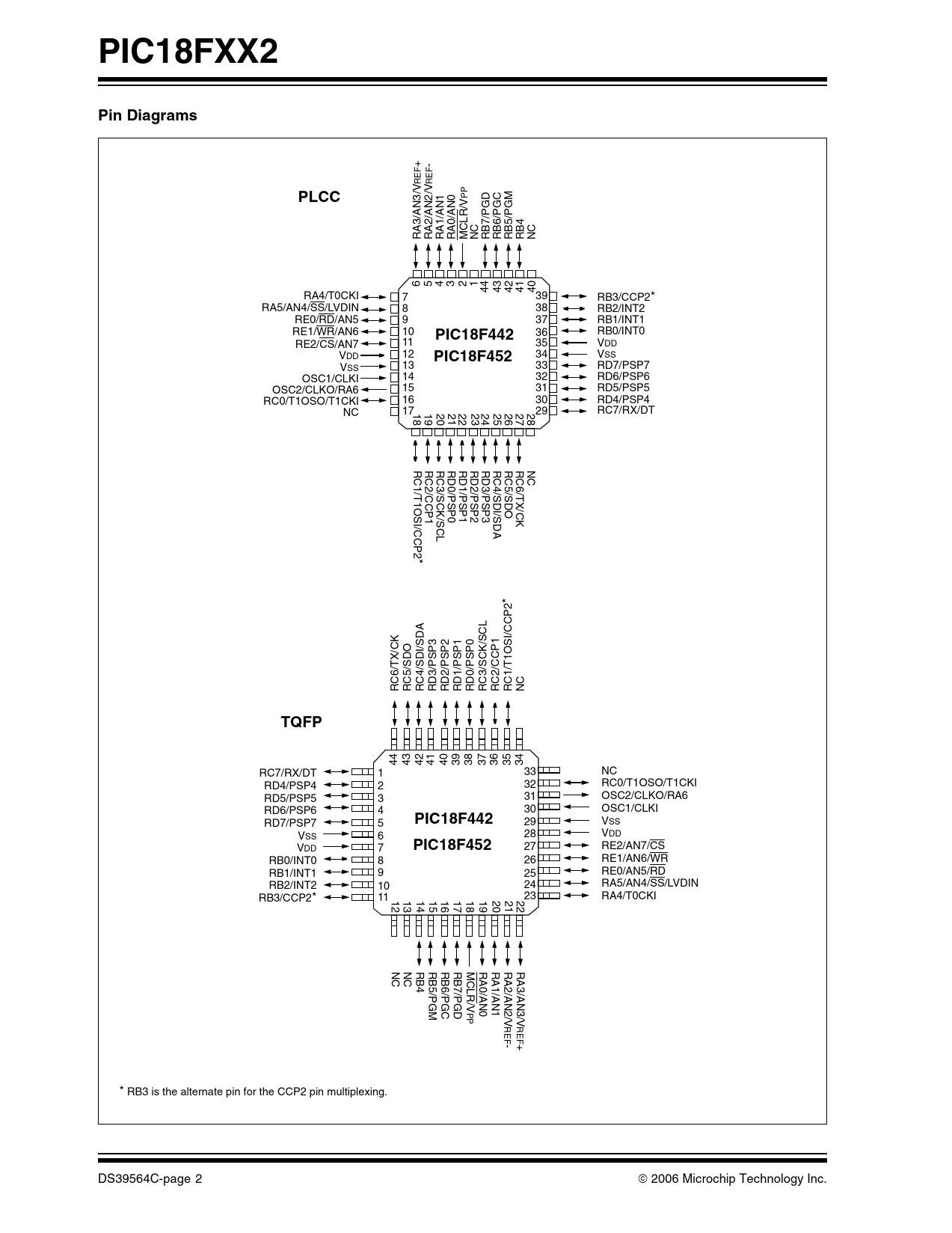 | Páginas / Página | 332 / 4 — PIC18FXX2. Pin Diagrams. PLCC. PIC18F442. PIC18F452. TQFP |