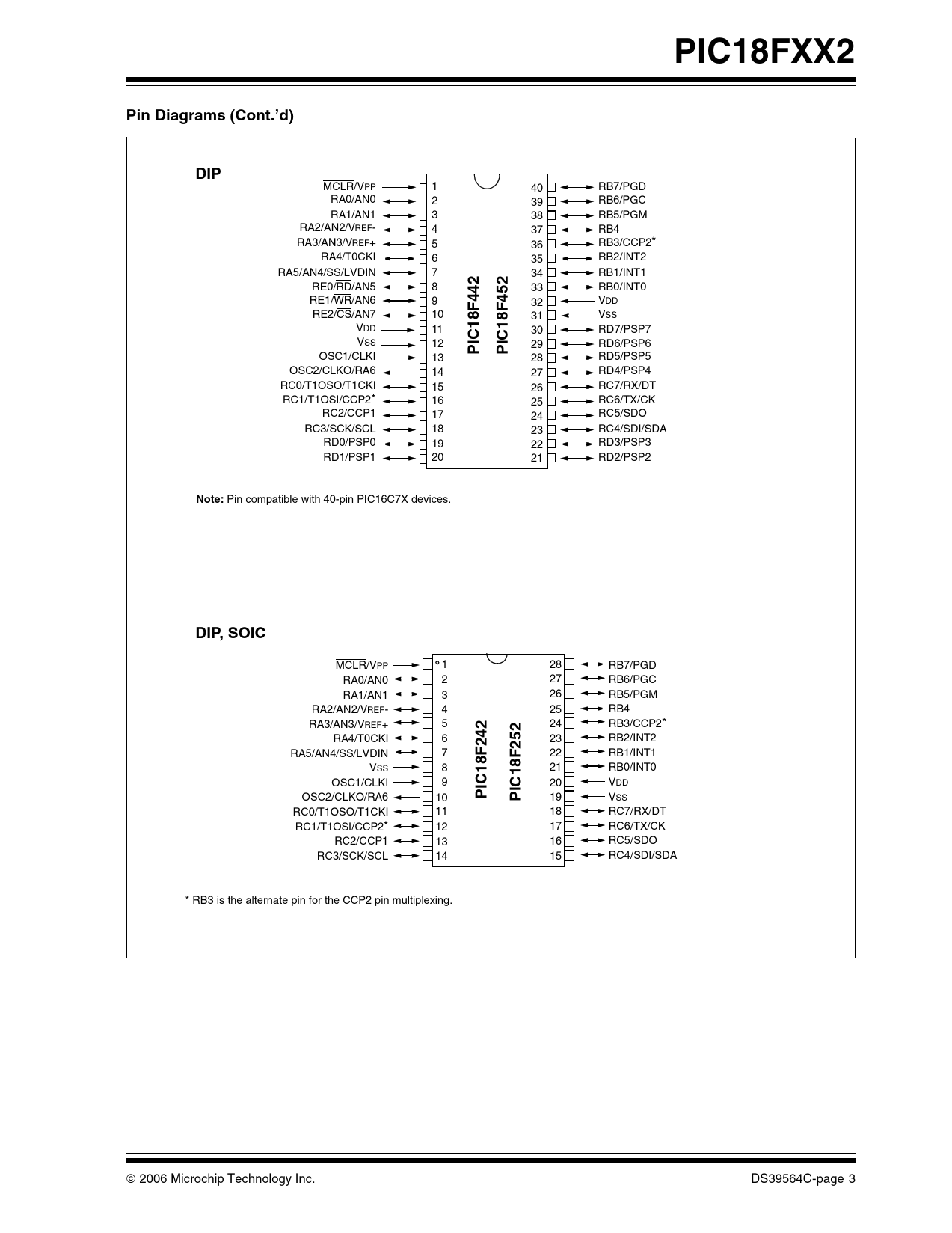 PIC18FXX2. Pin Diagrams (Cont.’d). DIP. PIC1. Note:. DIP, SOIC. 18F. PIC