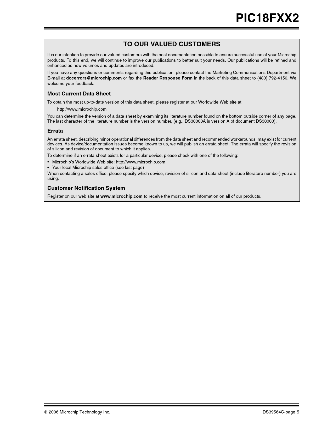 PIC18FXX2 TO OUR VALUED CUSTOMERS