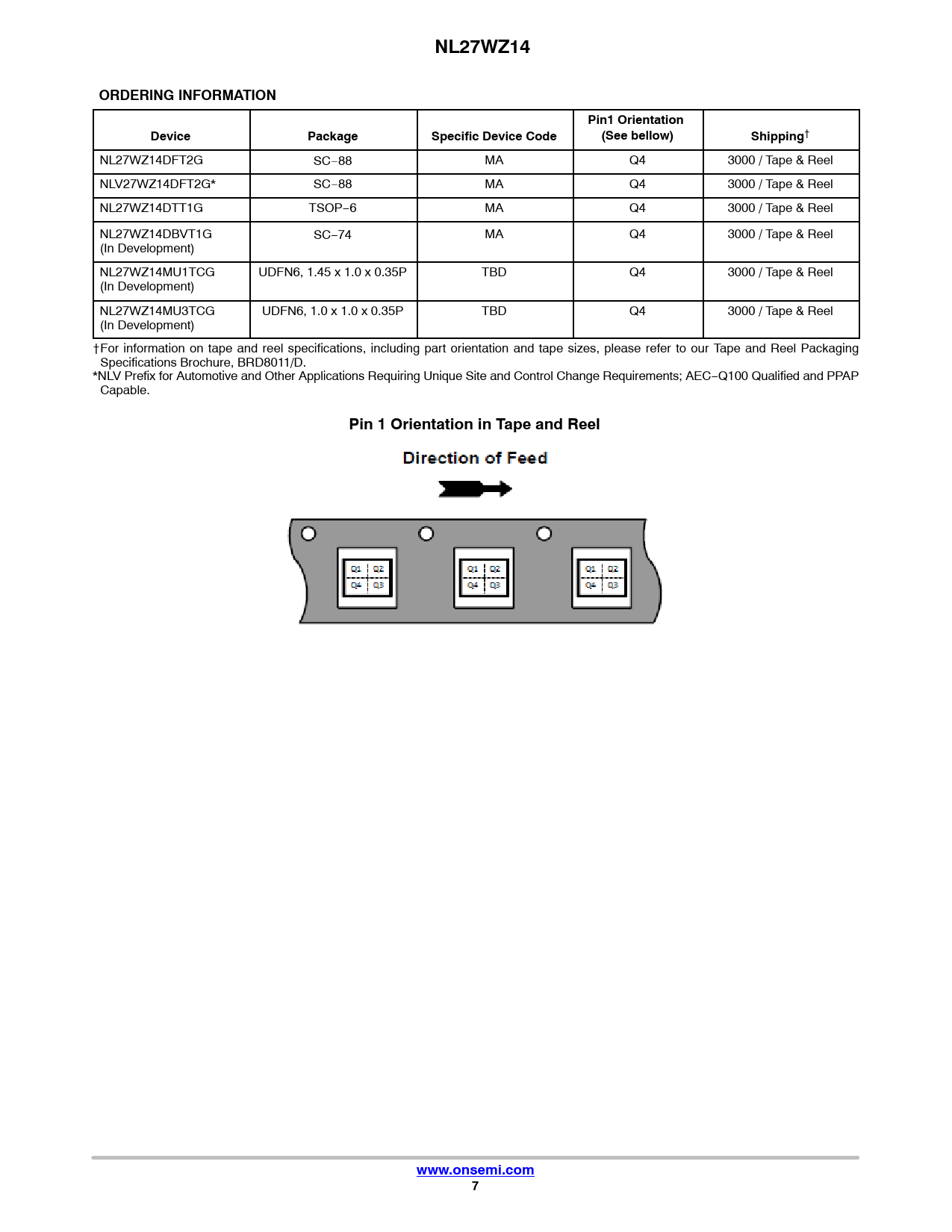 Páginas / Página12 / 7 — NL27WZ14. ORDERING INFORMATION. Pin1 Orientation. Device. Package. …