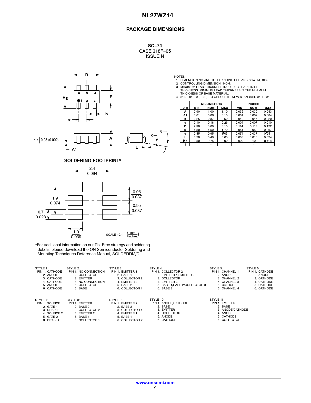 NL27WZ14. PACKAGE DIMENSIONS. SC−74. MILLIMETERS. INCHES. DIM. MIN. NOM. MAX. SOLDERING FOOTPRINT*. www.onsemi.com