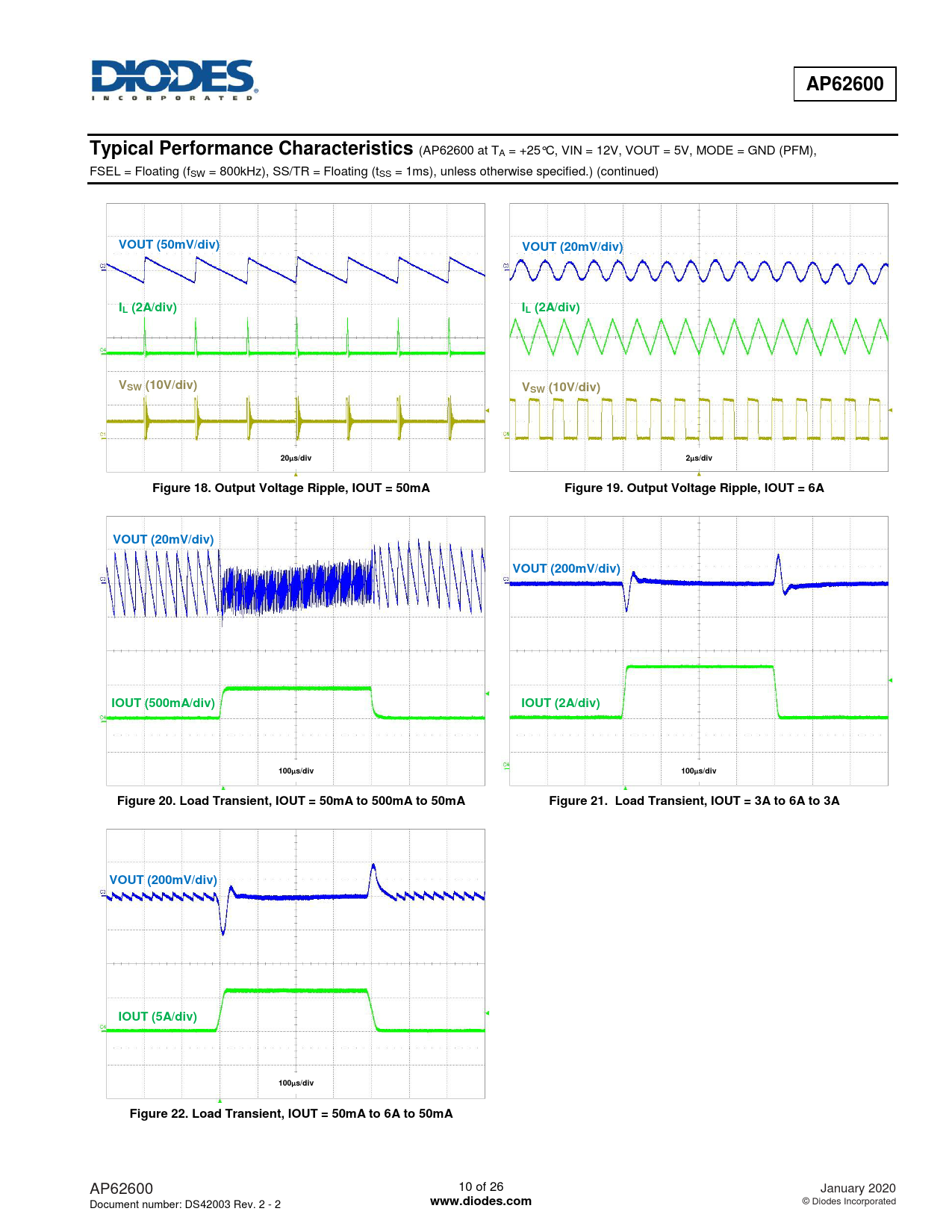 | Páginas / Página | 26 / 10 — AP62600. Typical Performance Characteristics. VOUT (50mV/div). VOUT … |