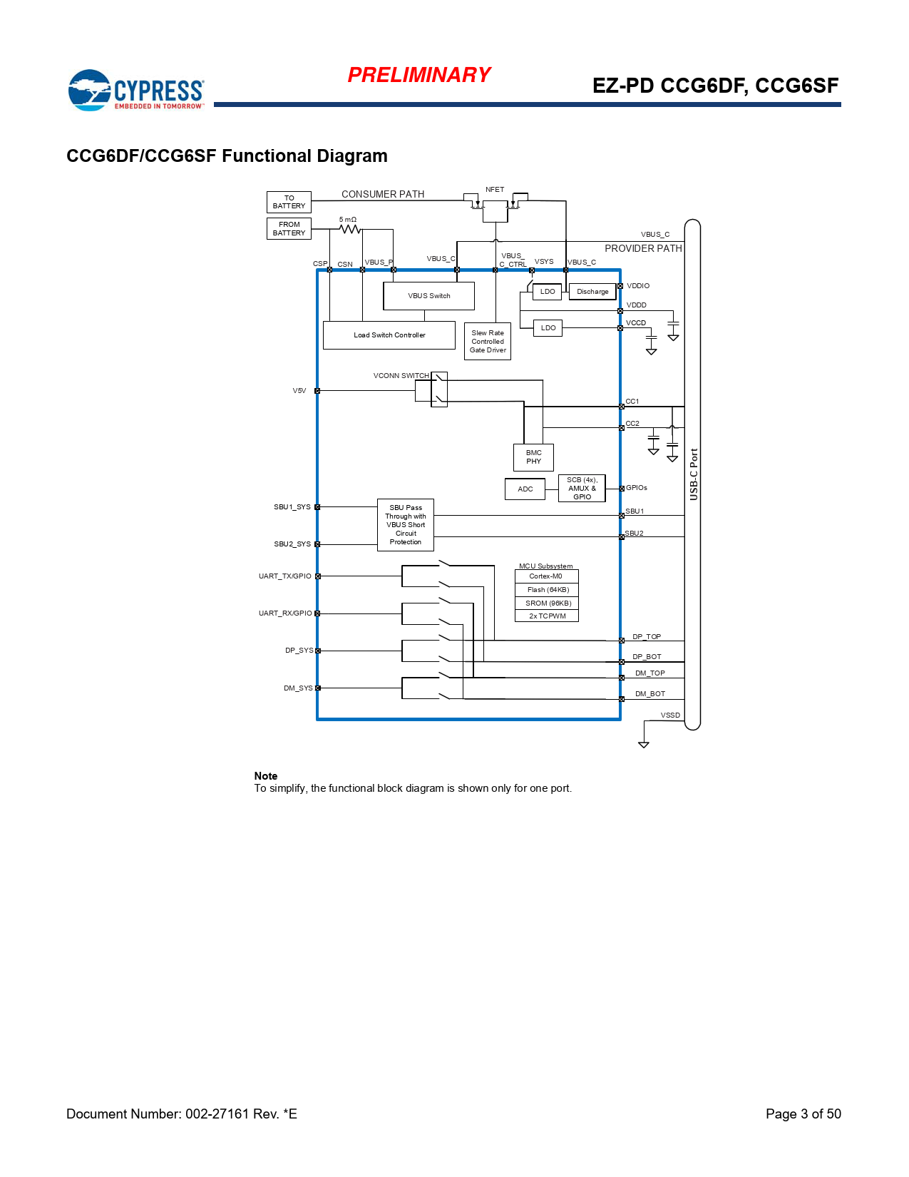 Páginas / Página50 / 3 — PRELIMINARY. EZ-PD CCG6DF, CCG6SF. CCG6DF/CCG6SF Functional Diagram. o P. …