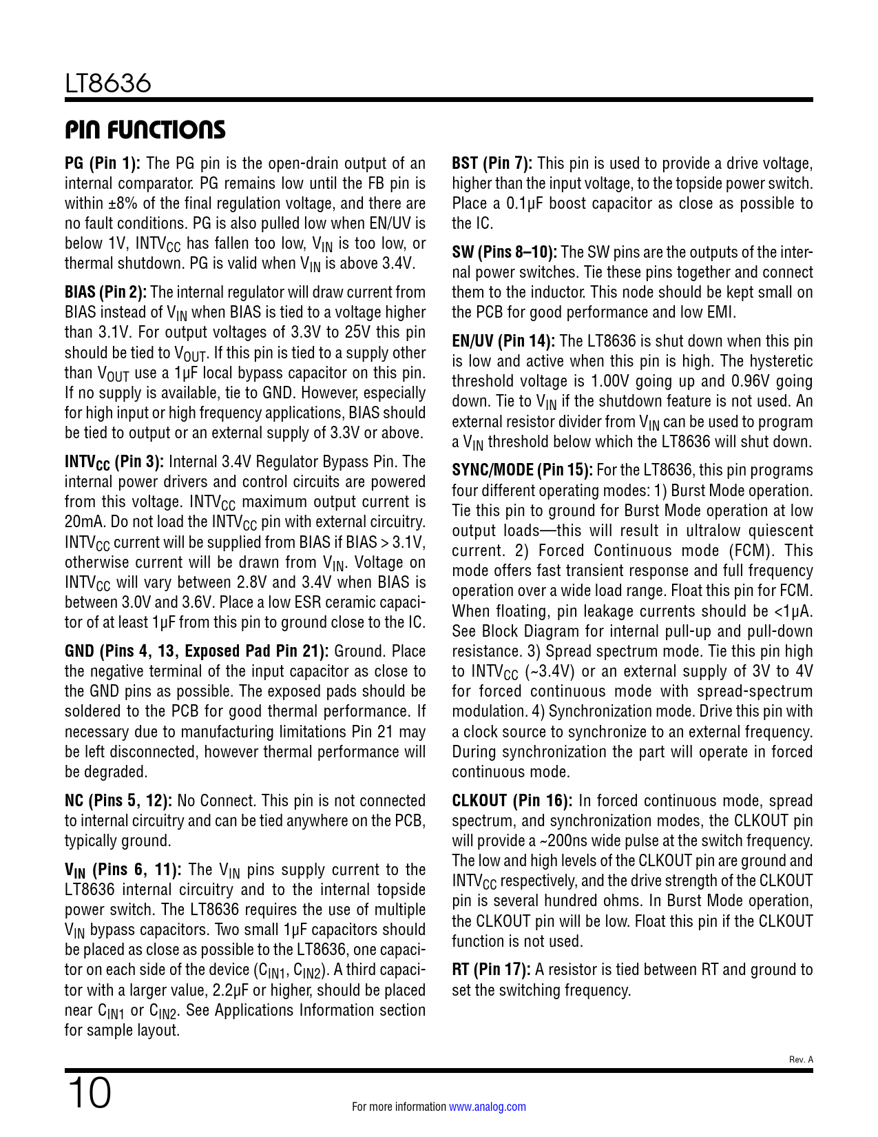 Páginas / Página26 / 10 — PIN FUNCTIONS PG (Pin 1):. BST (Pin 7):. SW (Pins 8–10):. BIAS (Pin 2):. …