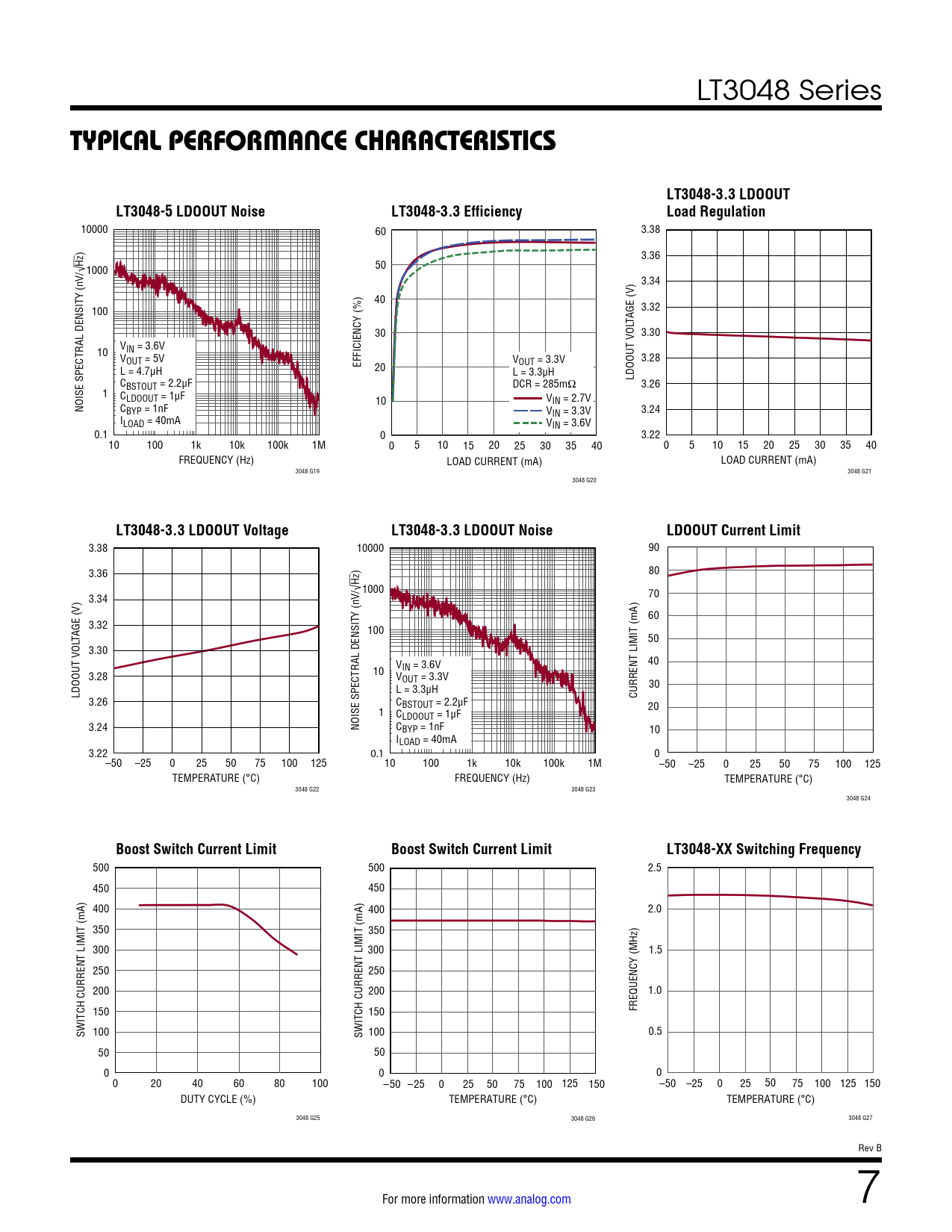 TYPICAL PERFORMANCE CHARACTERISTICS LT3048-3.3 LDOOUT LT3048-5 LDOOUT Noise LT3048-3.3 Efficiency Load Regulation