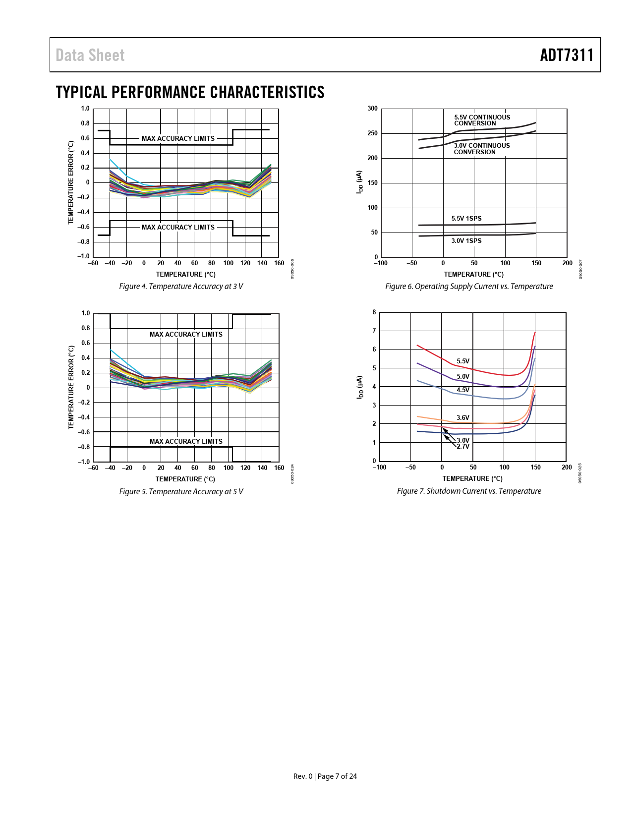 Data Sheet. ADT7311. TYPICAL PERFORMANCE CHARACTERISTICS. 1.0. 300. 5.5V CONTINUOUS. 0.8. CONVERSION. 250. 0.6. MAX ACCURACY LIMITS