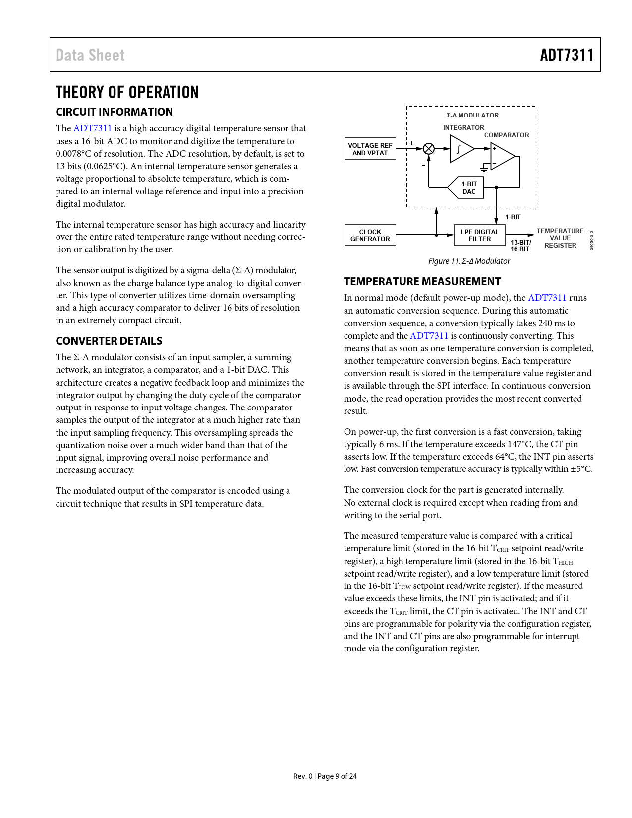 Páginas / Página24 / 9 — Data Sheet. ADT7311. THEORY OF OPERATION CIRCUIT INFORMATION. Σ-∆ …